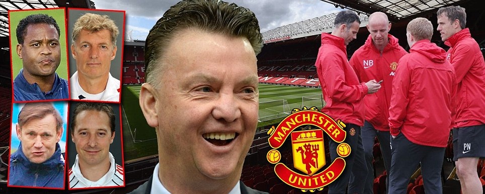 Thành phần trong bộ máy huấn luyện của Van Gaal sau khi tiếp quản ghế nóng ở Old Trafford gồm có trợ lý HLV Patrick Kluivert, HLV thủ môn Frans Hoek, nhà vật lý trị liệu Jos Van Dijk và phân tích chiến thuật Max Reckers. Để có cái nhìn toàn diện về M.U, rất có thể Van Gaal sẽ bổ sung Ryan Giggs, HLV tạm quyền của M.U, vào vị trí trợ lý.