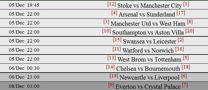 | MU gặp West Ham lúc 22 ngày 5/12 ở vòng 15 Premier League. |