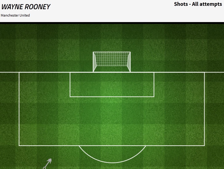 | Rooney chỉ có một cú sút về phía khung thành thủ môn Joe Hart trong 90 phút. Đồ họa: Fourfourtwo. |