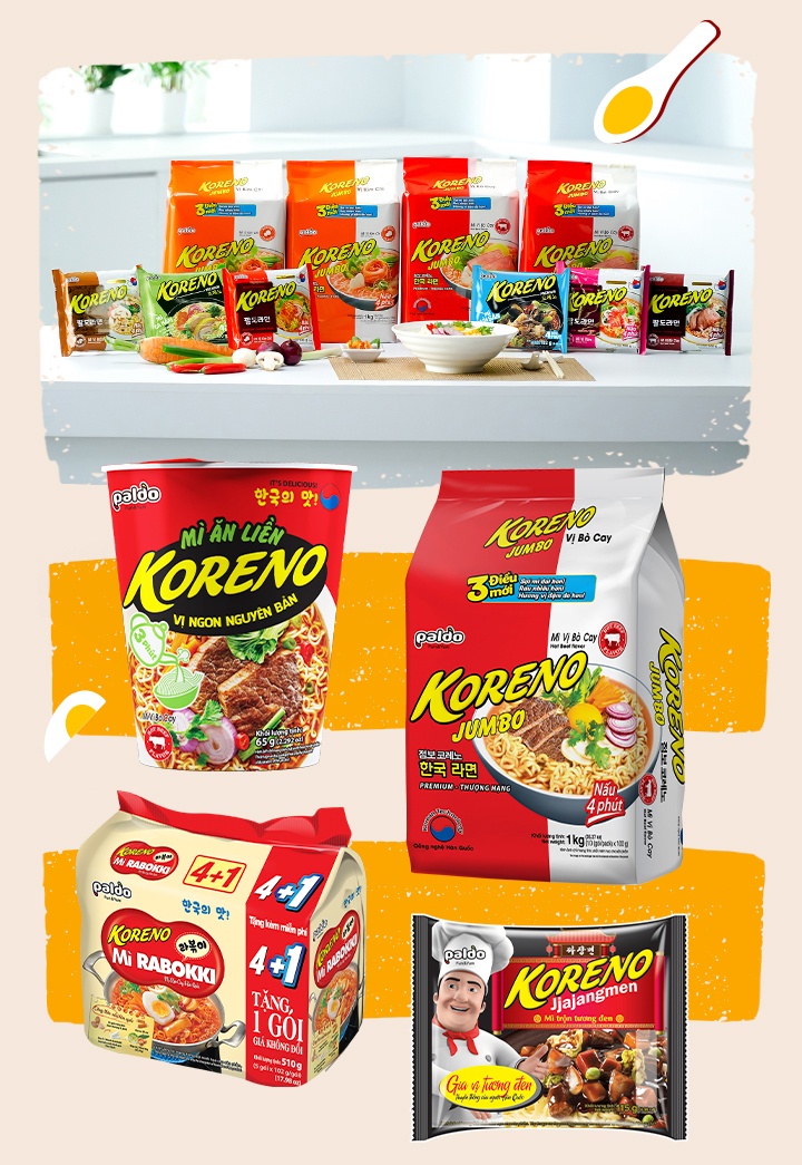 Sự kết hợp của vị ngon vốn có từ ẩm thực Hàn Quốc, sức sáng tạo của người dùng Việt Nam cùng sự linh hoạt cho ra đời những sản phẩm đáp ứng nhu cầu thời đại của thương hiệu Koreno là công thức để mì gói Hàn Quốc trở thành món ăn quen thuộc trong bữa ăn của người dùng cả nước.