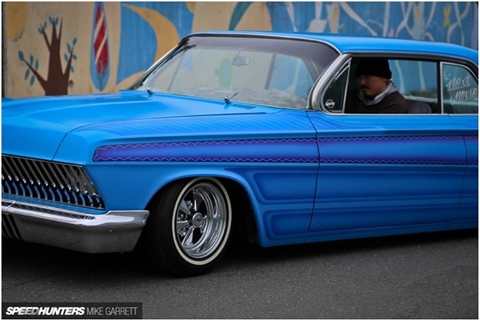 Qua phim ảnh Hollywood, kiểu độ xe này lan từ Mỹ đến Nhật vào những năm 70, khi những bộ phim miêu tả "cao bồi đô thị" ra tay hành hiệp trừ gian diệt bạo thường chạy những chiếc xe độ nâng hạ gầm như thế này. |