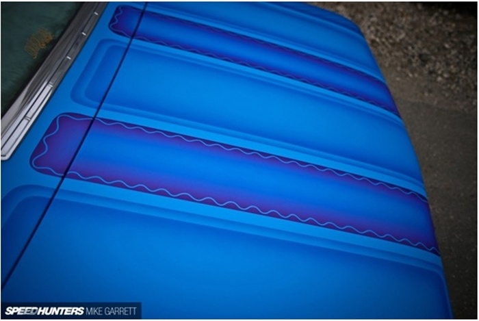 Công việc sơn phủ là một phần quan trọng. Màu sắc xanh cổ điển, các đường vằn, những hình con sò ẩn mờ dưới lớp sơn... tất cả tạo ra một sự kết hợp hoàn hảo. Vỏ xe nhìn thoáng qua tưởng như không phẳng nhẵn mà gân guốc. |