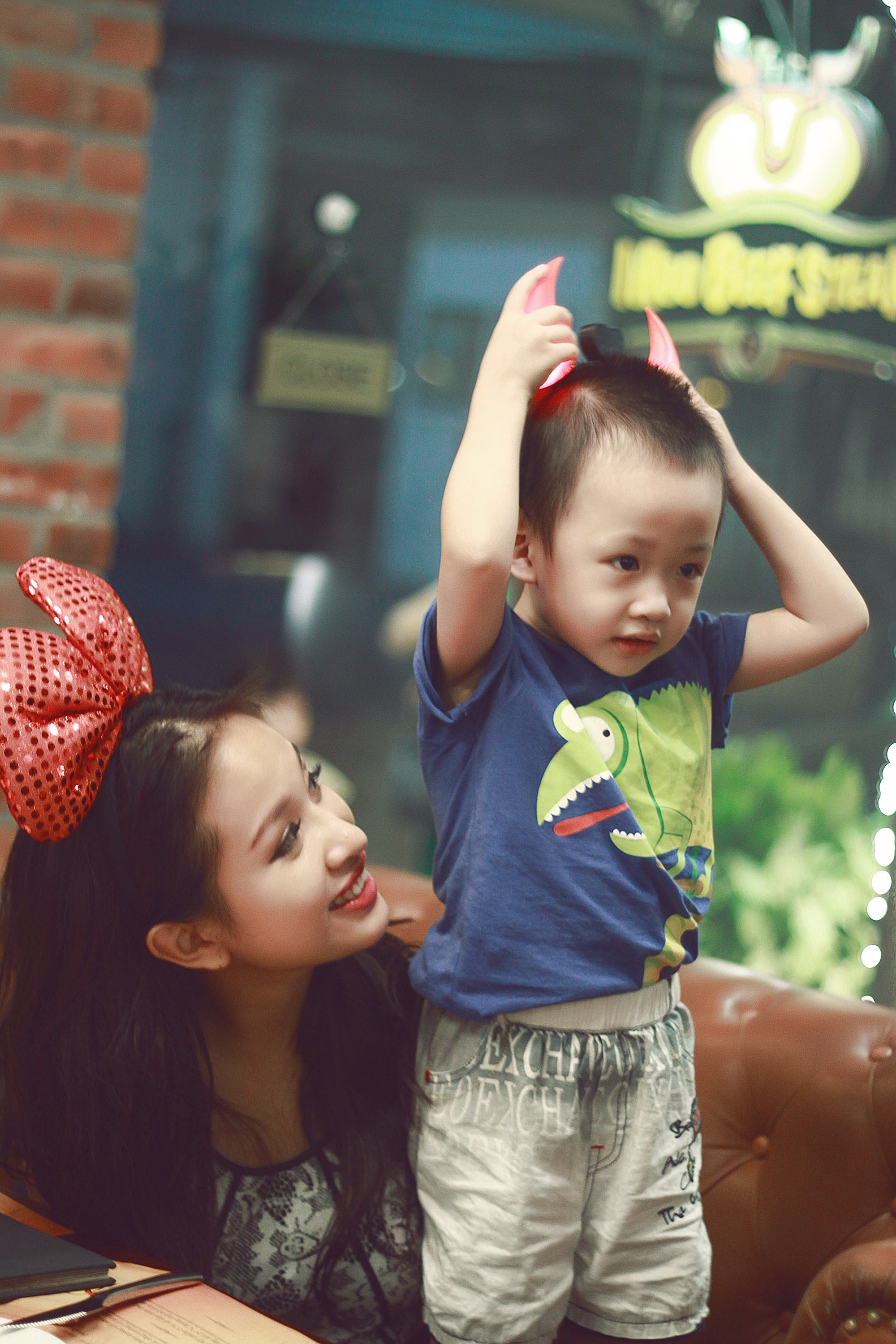 | "Con trai tôi dù ít tuổi nhưng không bao giờ nói điều gì khiến mẹ khó xử. Bin rất tinh tế và hiểu tâm trạng cũng như suy nghĩ của mẹ", cựu hot girl Hà thành tâm sự về tình yêu lớn của mình. "Chỉ có 1 lần duy nhất cách đây nửa năm, con có hỏi bố đâu, nhưng sau khi thấy mẹ buồn buồn không trả lời nên từ đó không bao giờ hỏi lại nữa". |