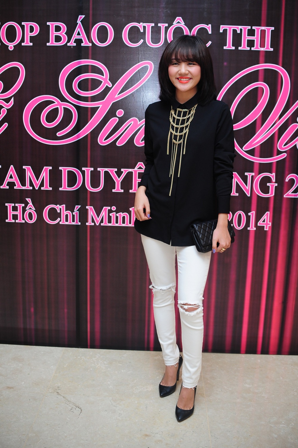 Hôm 12/5, Văn Mai Hương đã có mặt trong buổi họp báo giới thiệu cuộc thi Nữ sinh viên Việt Nam duyên dáng mùa thứ hai tại TP.HCM. |