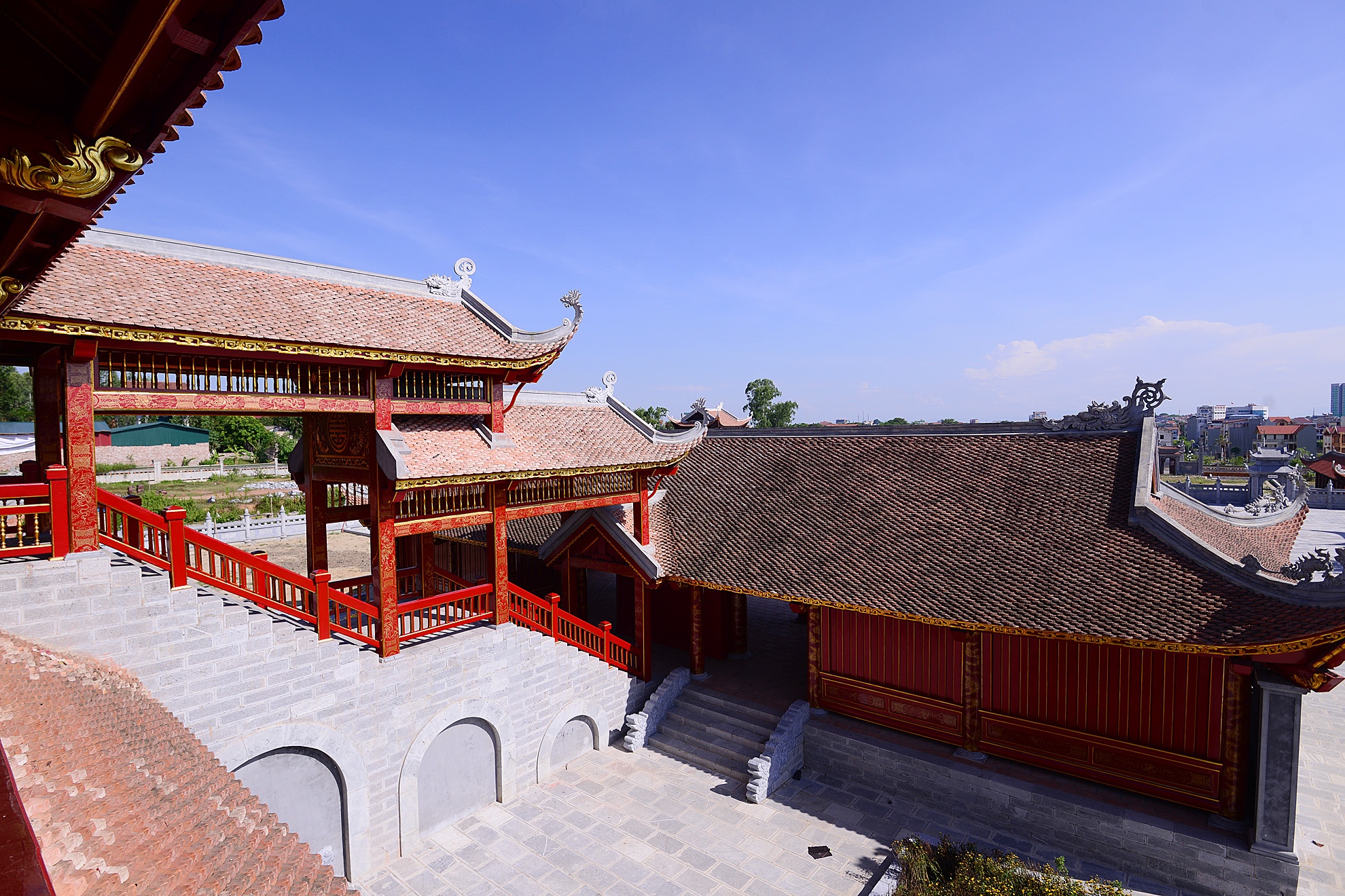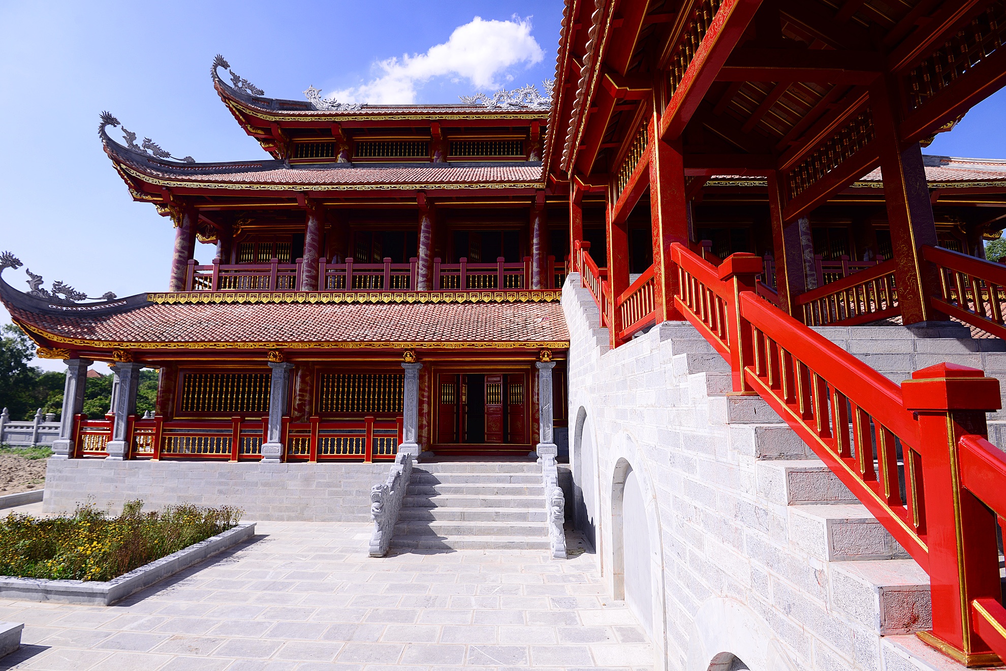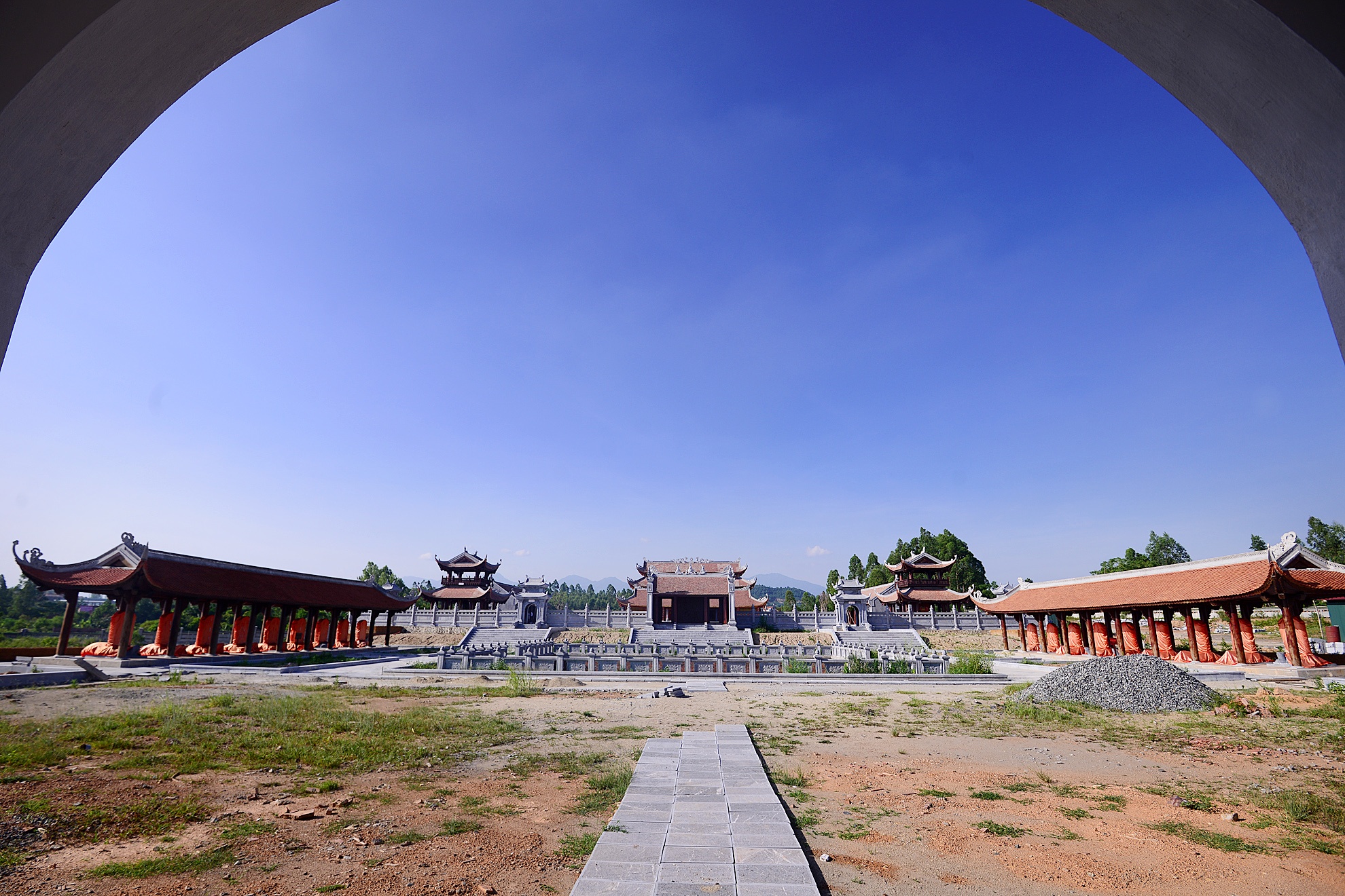 Qua cổng Nghi Môn Nội, khách tham quan sẽ thấy toàn cảnh công trình rộng hơn 4,2 ha với các hạng mục như nhà che bia tổng, hồ Thiền Quang, nhà bia hai bên tả - hữu, đại thành môn, gác chuông, sân hành lễ, đền thờ chính, đại bái, hậu cung...