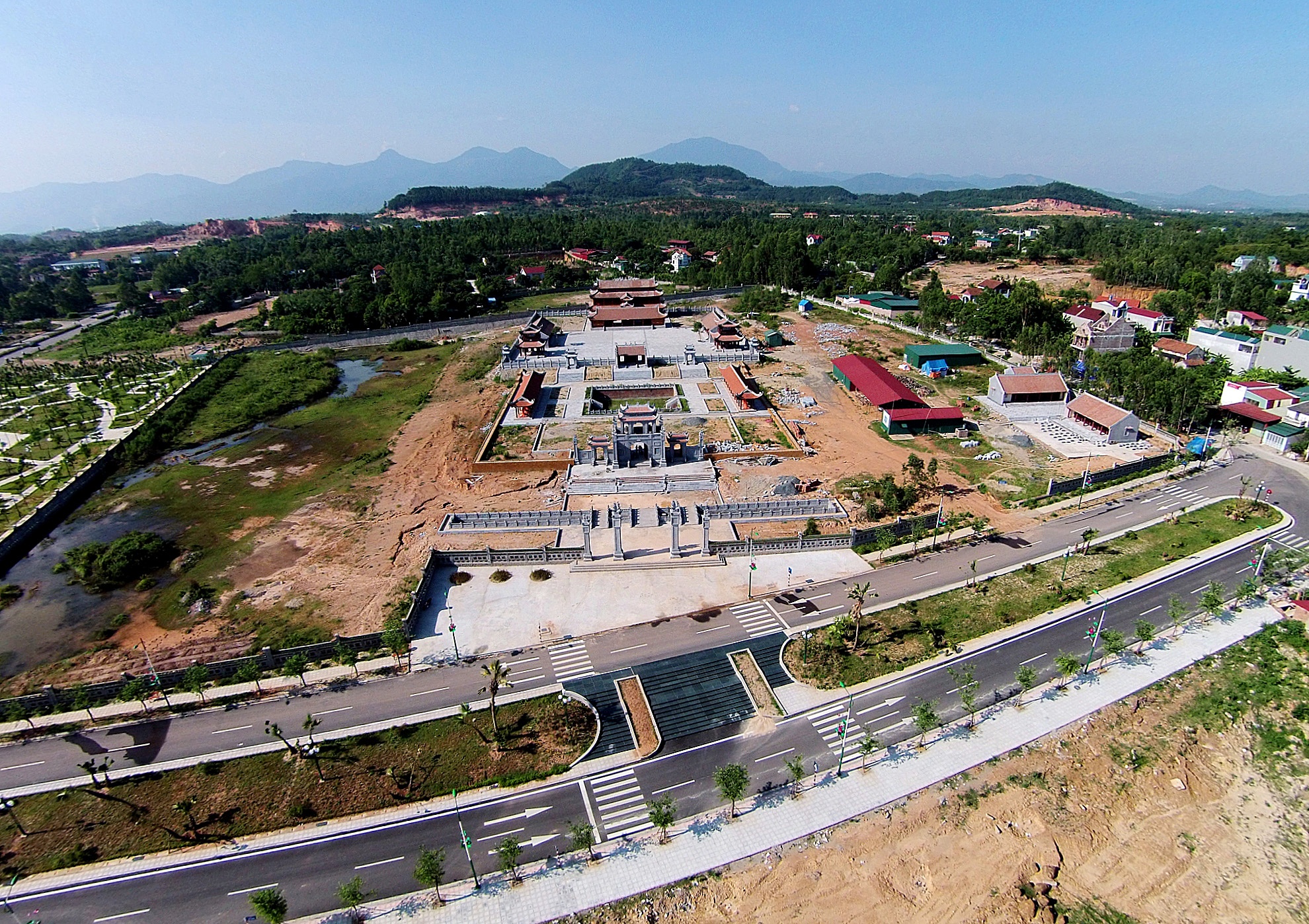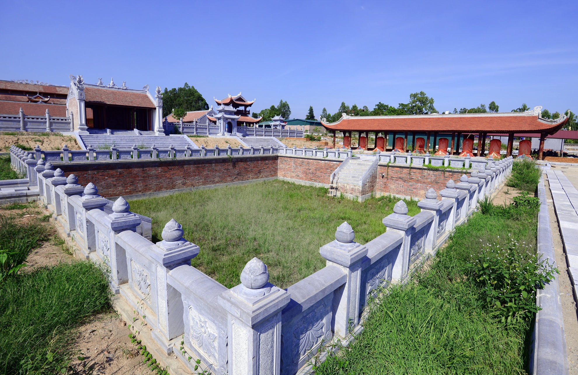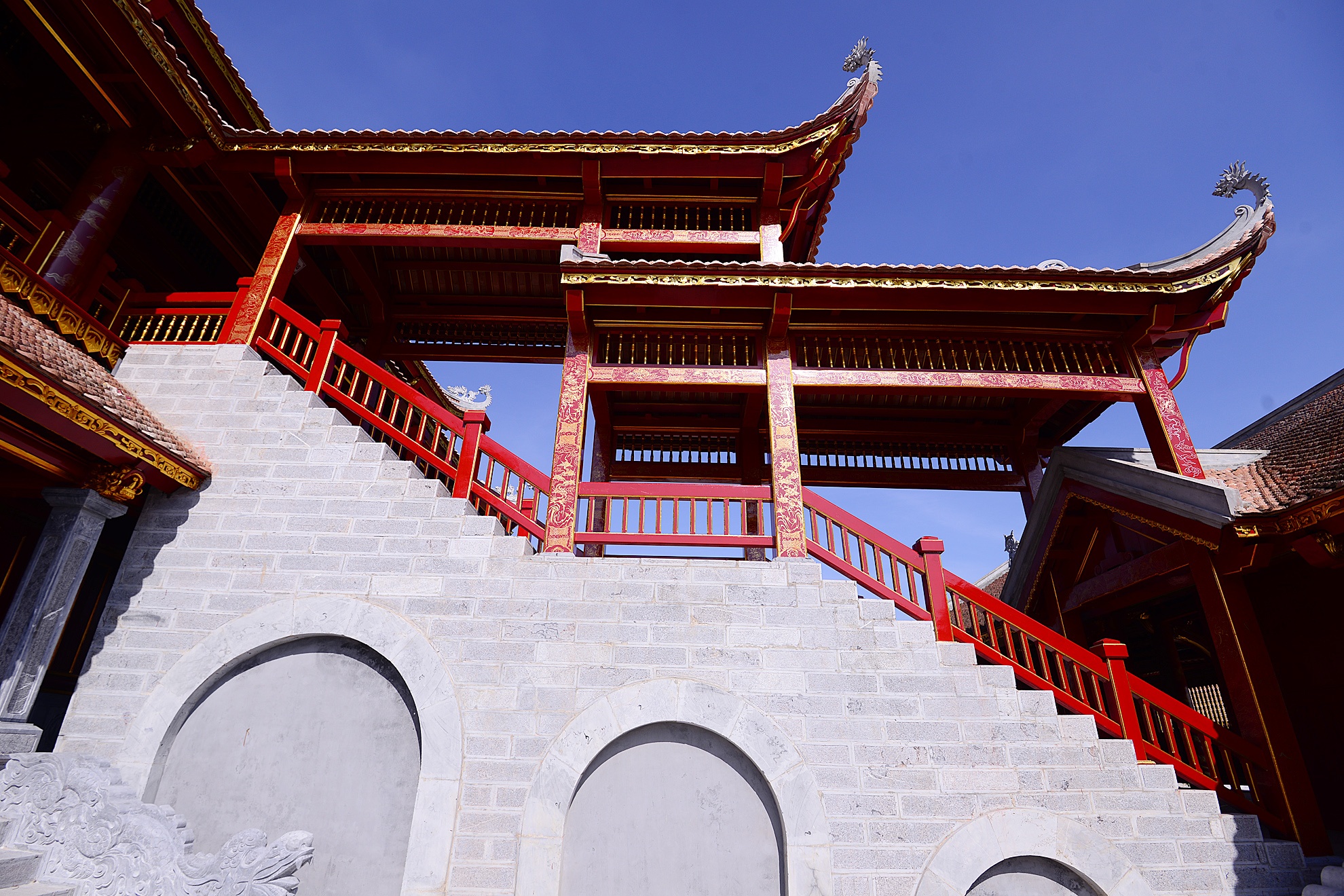 Qua cổng Nghi Môn Nội, khách tham quan sẽ thấy toàn cảnh công trình rộng hơn 4,2 ha với các hạng mục như nhà che bia tổng, hồ Thiền Quang, nhà bia hai bên tả - hữu, đại thành môn, gác chuông, sân hành lễ, đền thờ chính, đại bái, hậu cung...