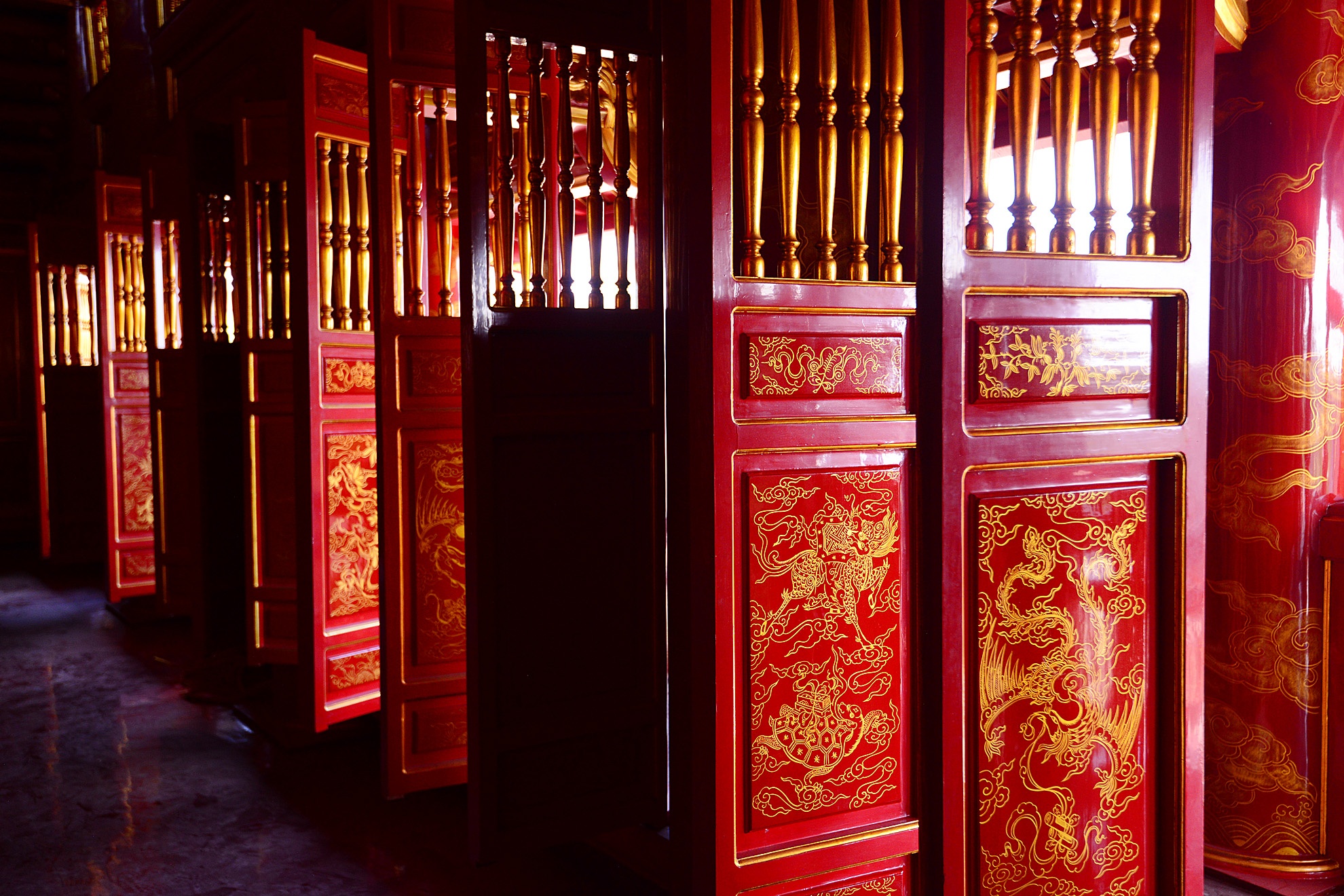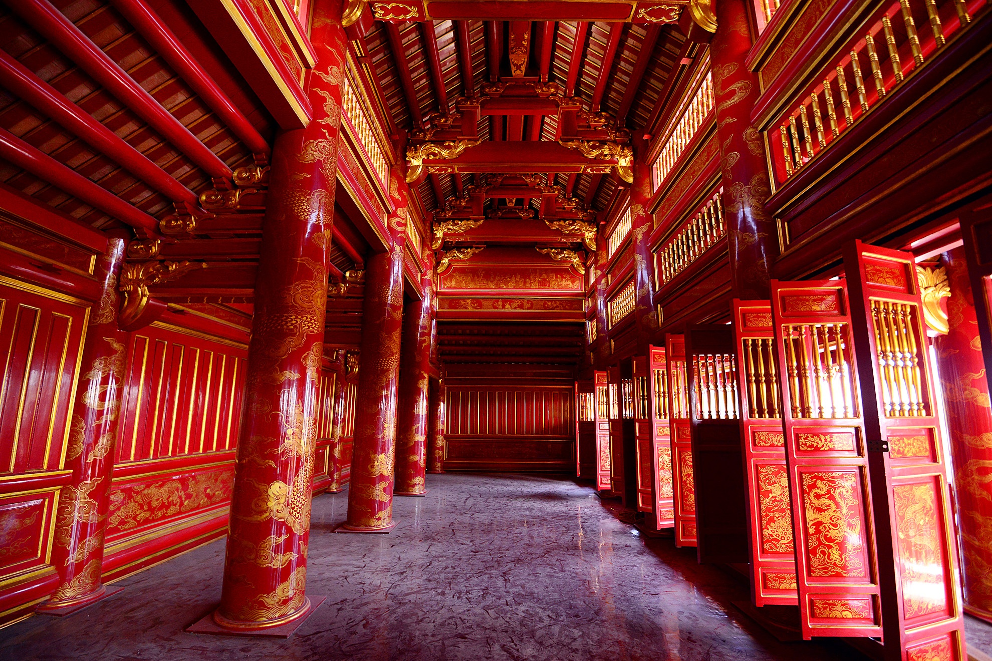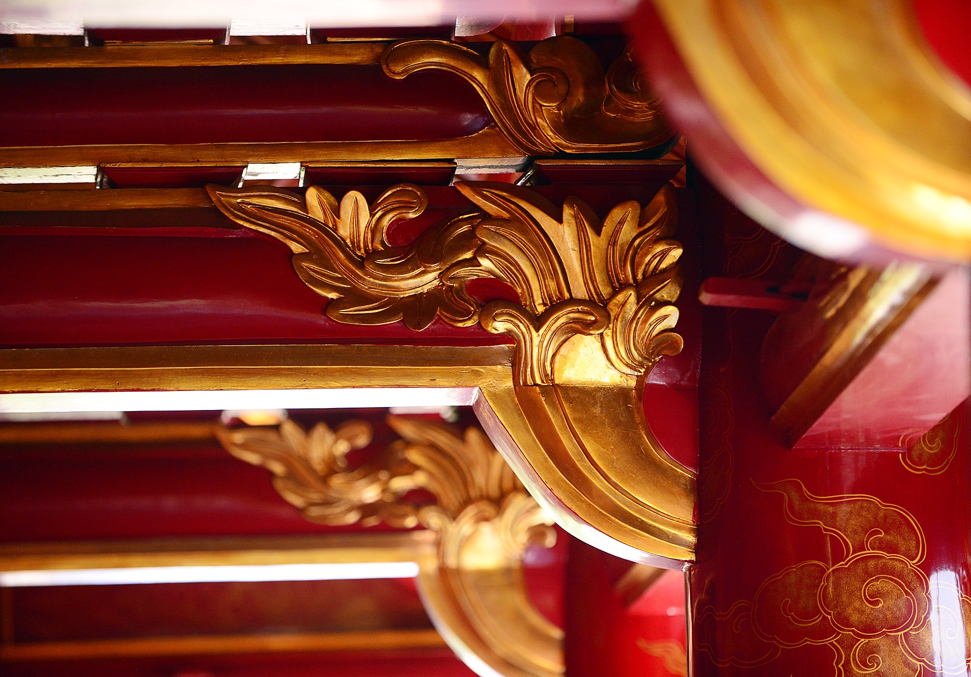 Toàn bộ lối đi lại đều được sơn son thếp vàng bắt mắt.