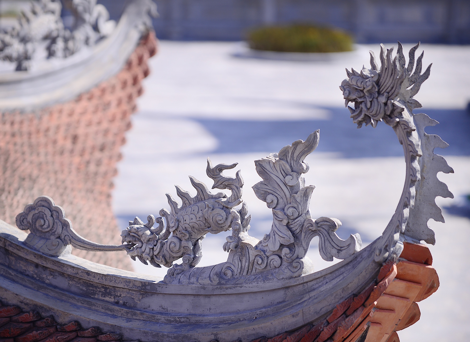 Những đường nét trạm trổ trên các mái nhà tả hữu trong khu sân hành lễ.