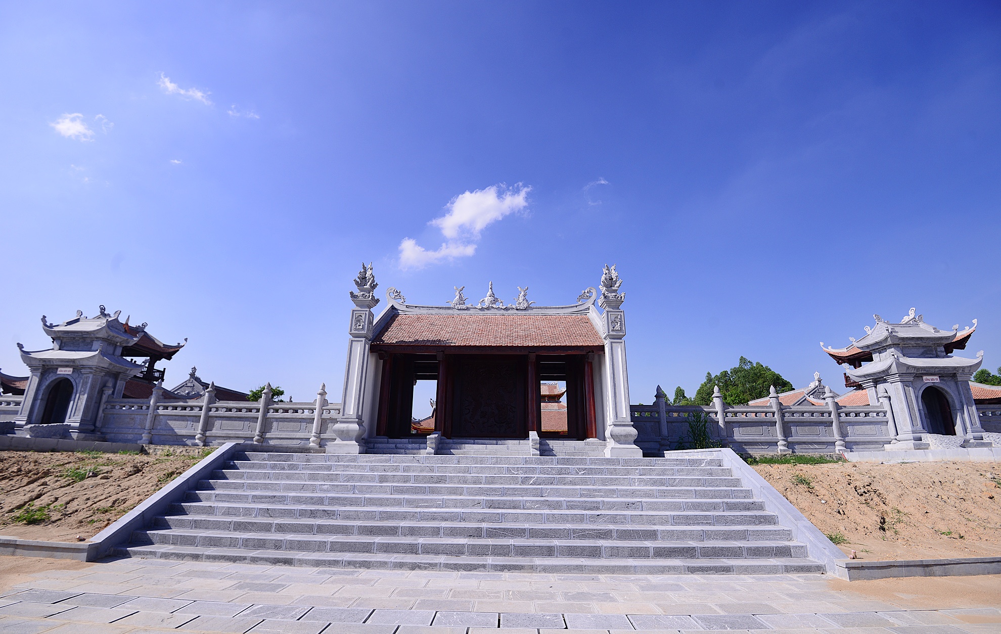 Đi thẳng vào bên trong là cổng chính và hai cổng tả, hữu. Hầu hết tất cả được làm bằng đá được vận chuyển từ Ninh Vân (Ninh Bình) tới.