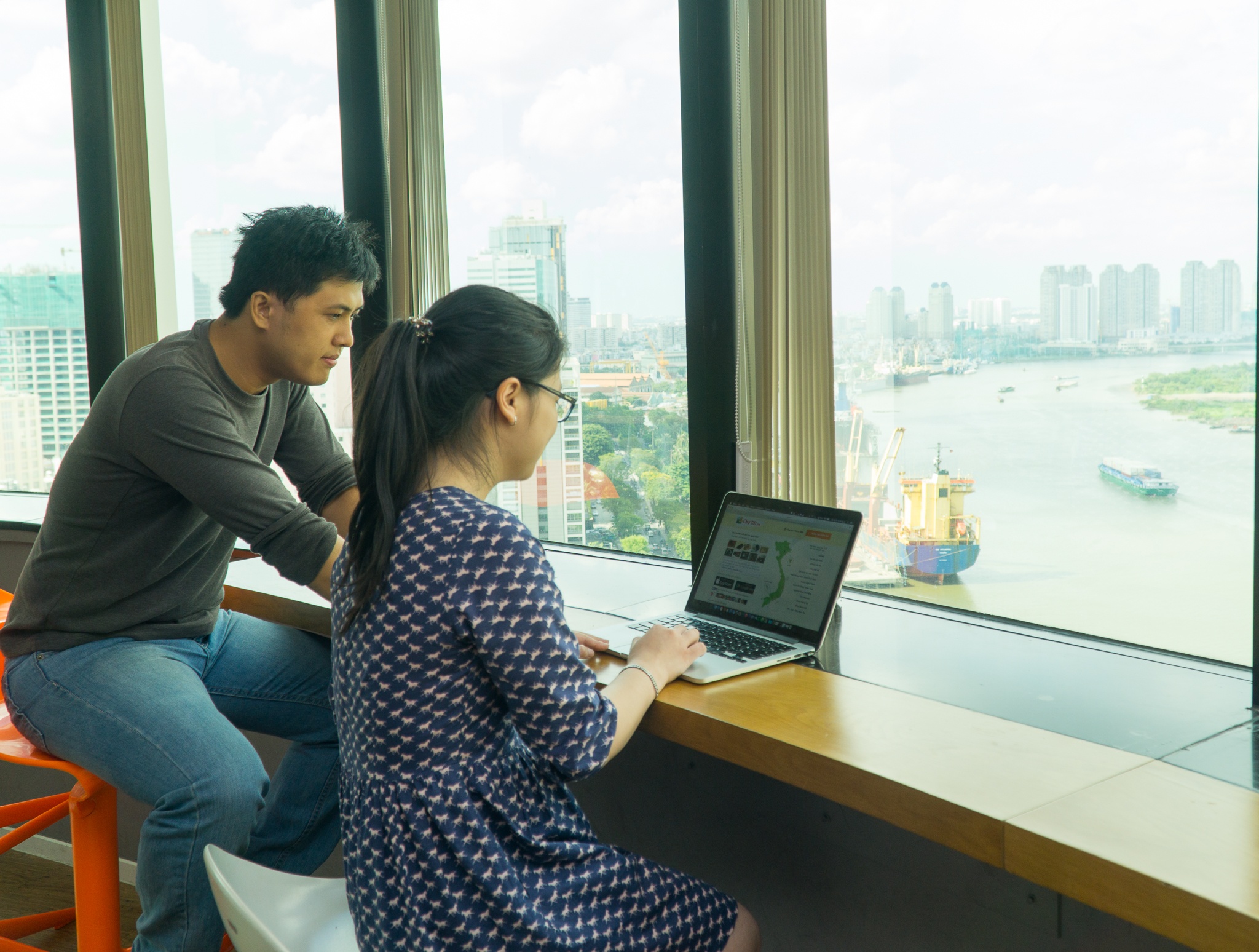 | Từ văn phòng này, nhân viên có thể nhìn thấy sông Sài Gòn và bến Bạch Đằng. |