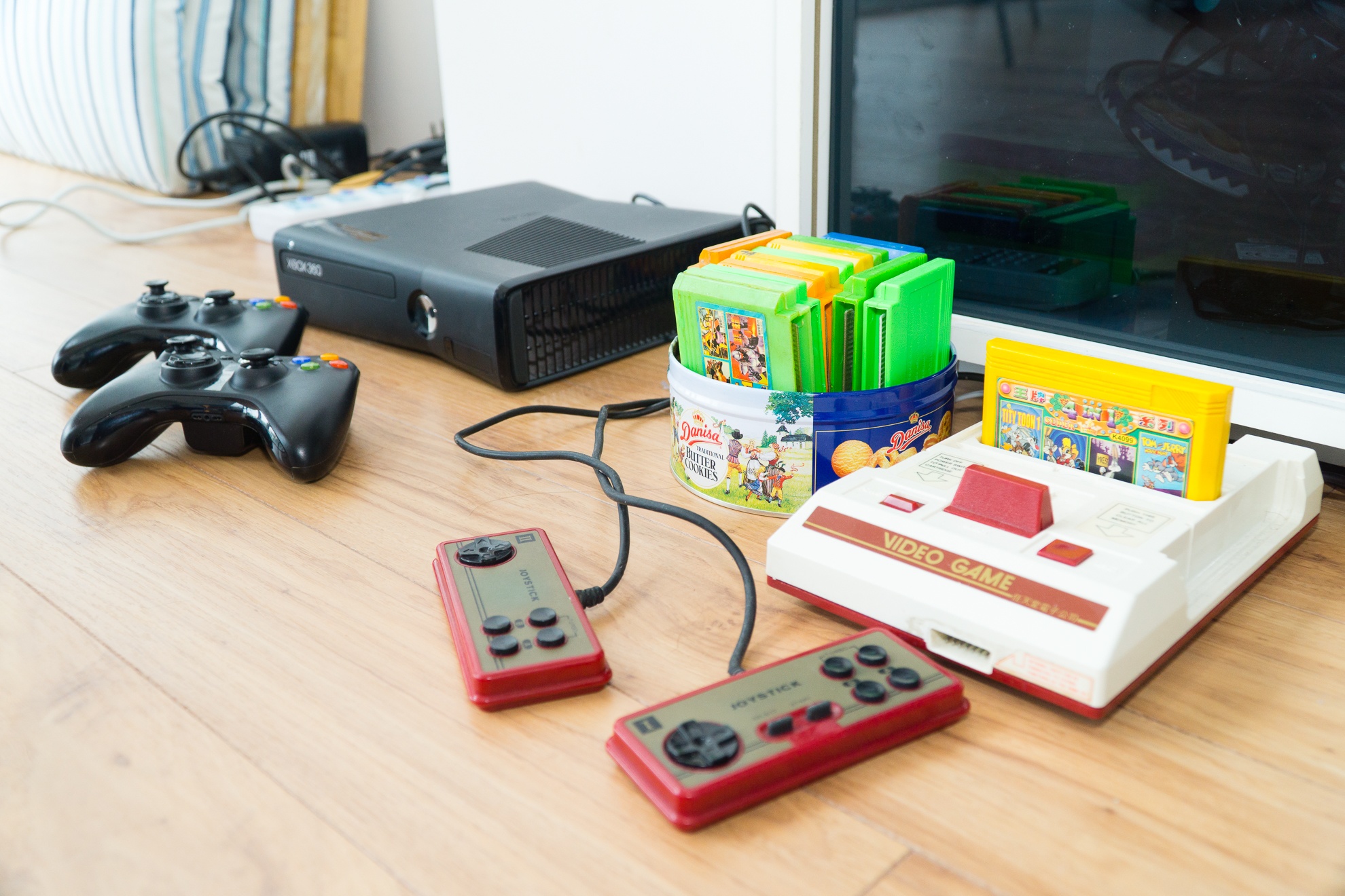 | Xbox 360 và máy chơi game băng "đồ cổ" cùng hiện diện tại một góc giải trí. |