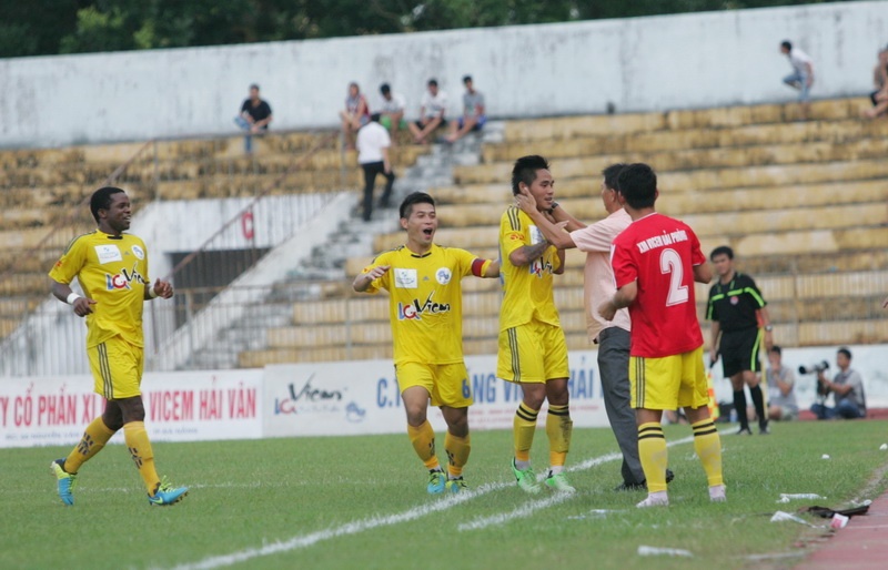 | Các cầu thủ V. Hải Phòng ăn mừng bàn thắng nâng tỷ số lên 2-0. |