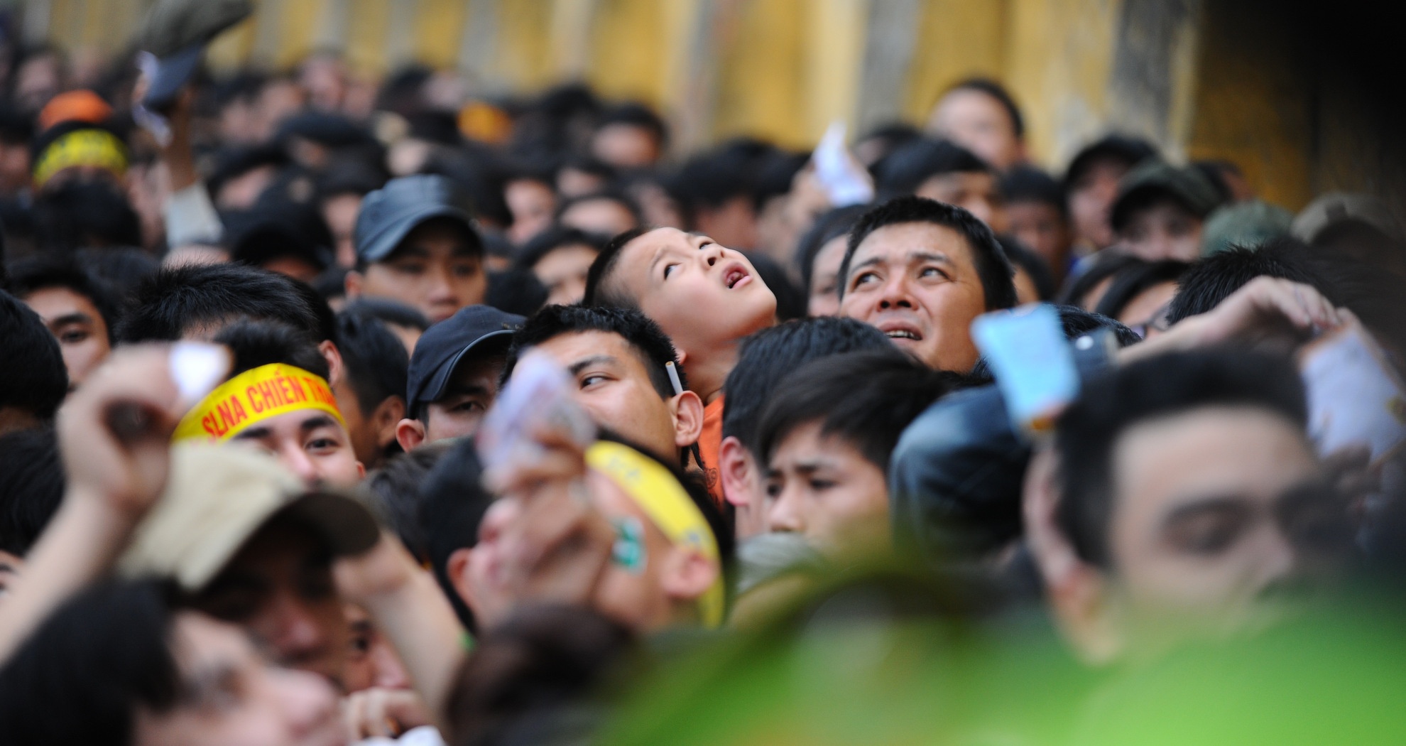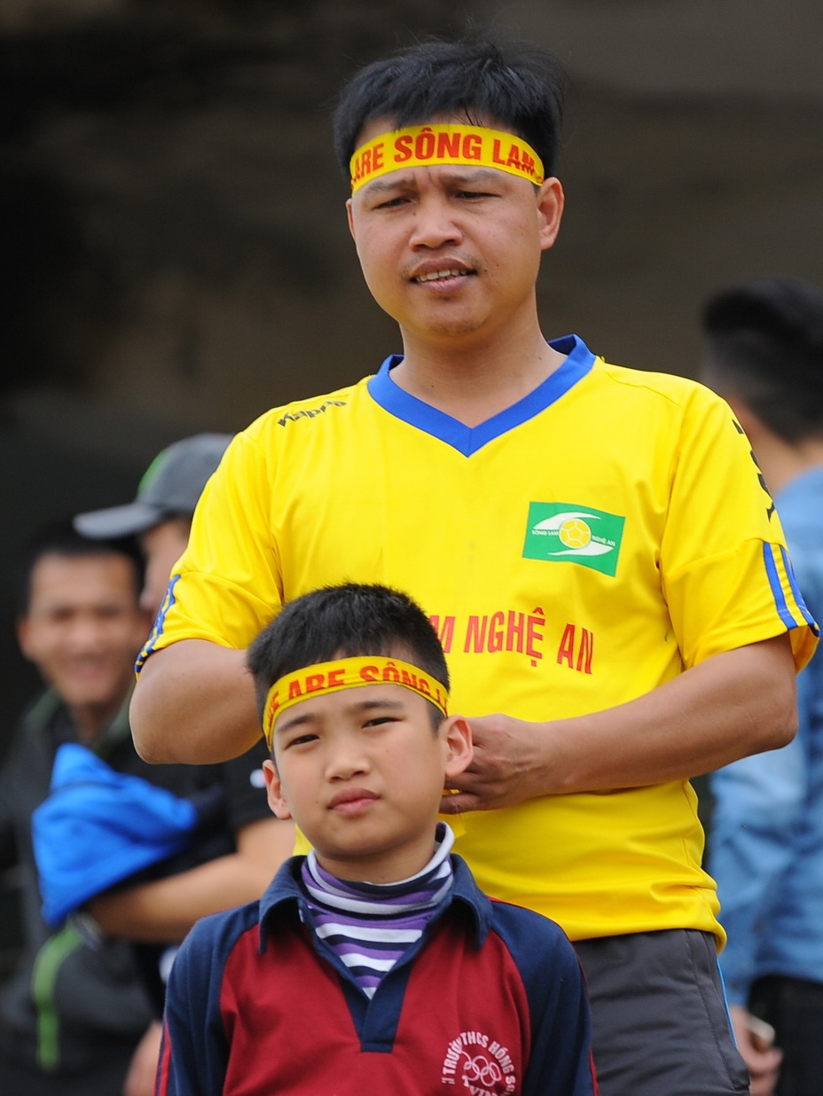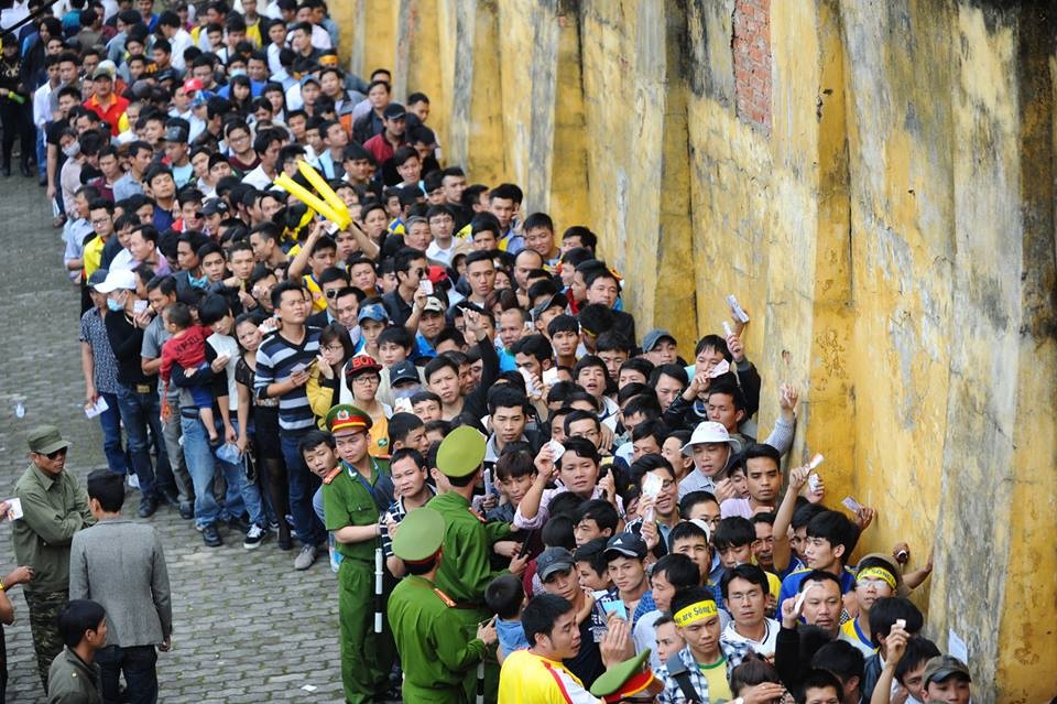 | Rất đông người hâm mộ kéo đến sân Vinh với hy vọng được chứng kiến trận đấu giữa SLNA và HAGL. 17h ngày 12/4 trận đấu khởi tranh, 15h30 ban tổ chức mới mở cửa vào sân nhưng từ 14h, các cổ động viên đã xếp hàng dài trước sân vận động. Lực lượng an ninh gặp khó khăn trong việc kiểm soát trật tự khi lượng lớn người hâm mộ đến sân. |