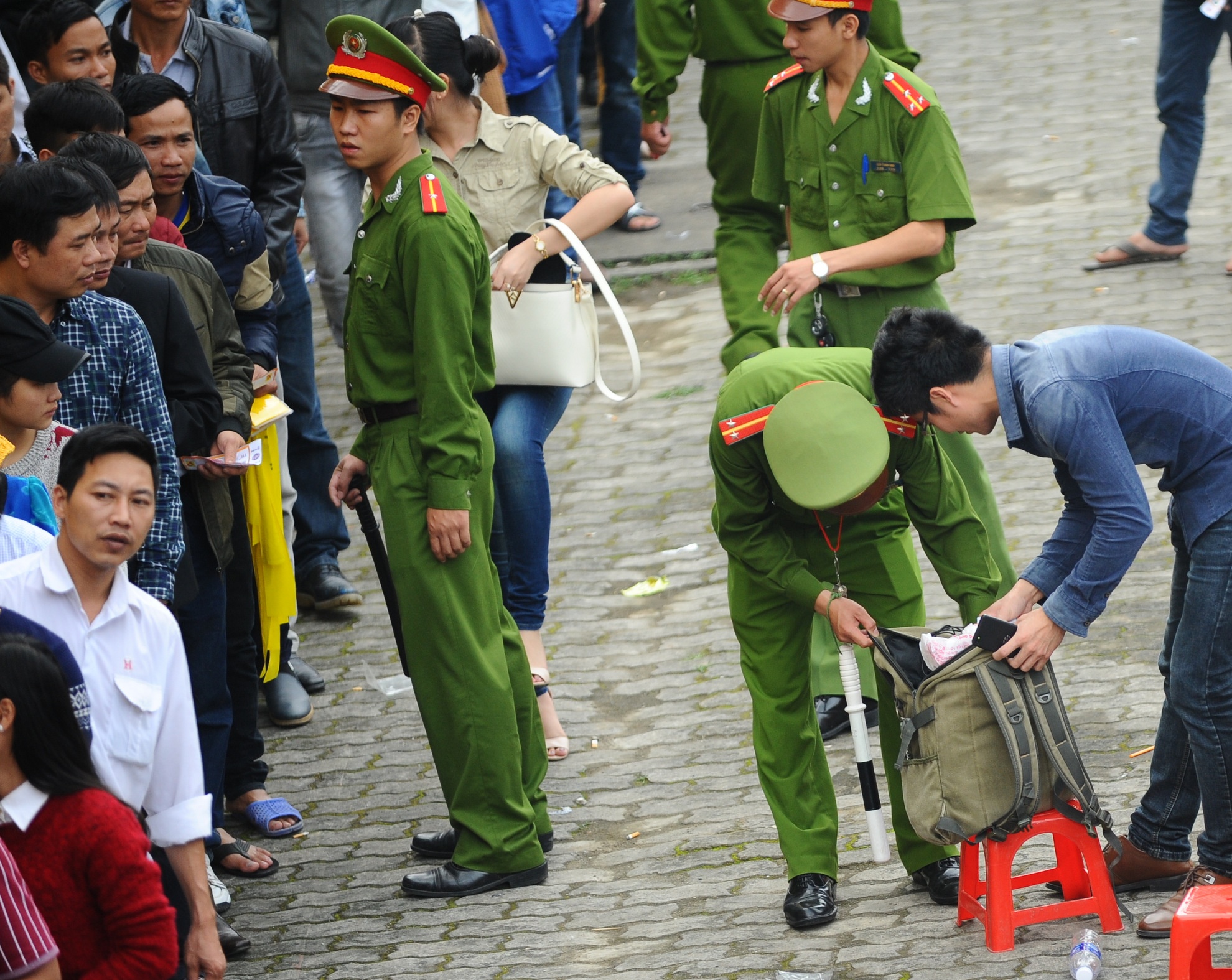 | Lực lượng an ninh kiểm tra nghiêm ngặt nhằm đảm bảo an toàn cho trận đấu. |