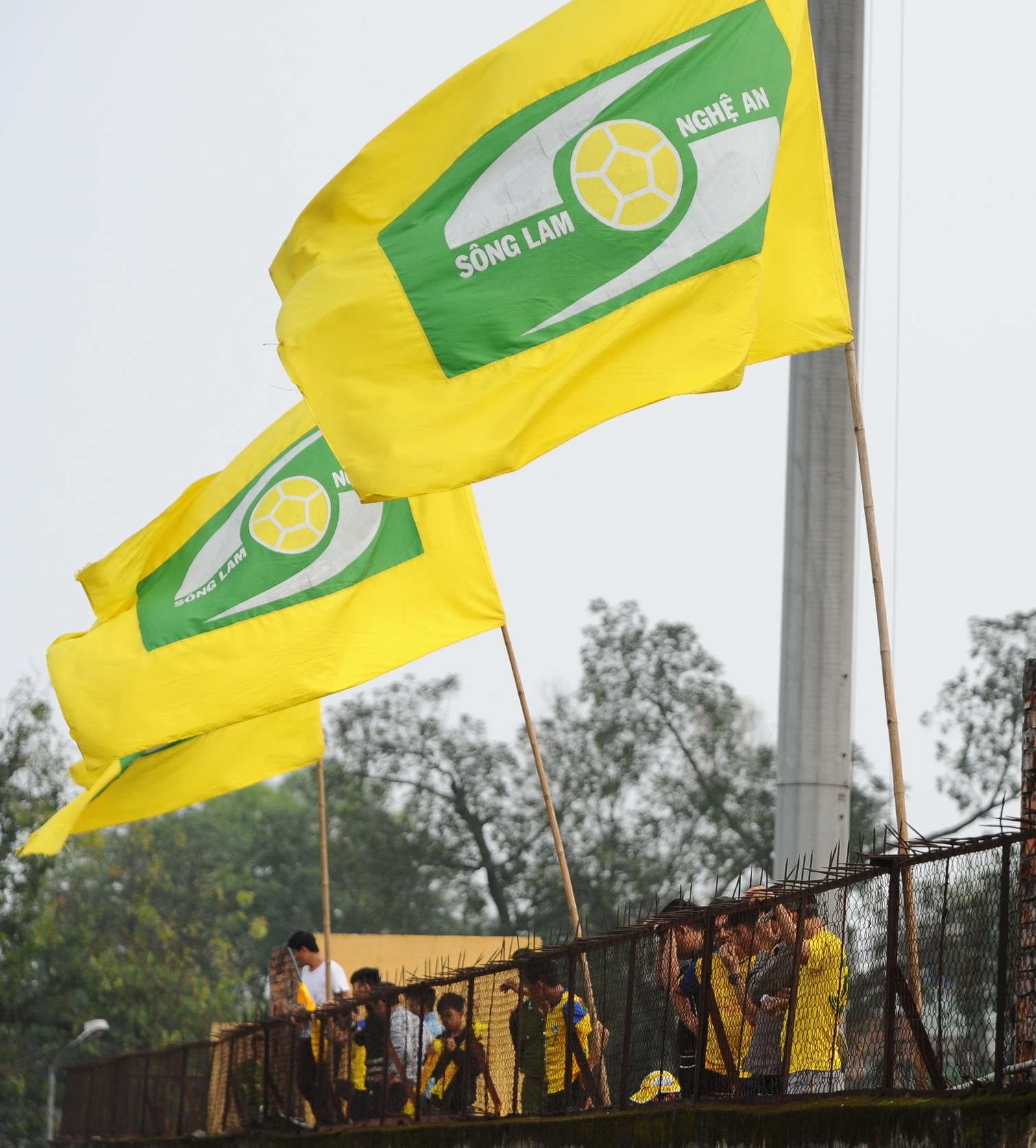 | CĐV SLNA mang lá cờ lớn vào sân để cổ vũ cho đội nhà. |