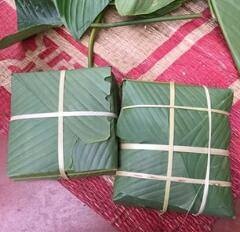 | 2 chiếc bánh chưng đầu tiên Văn Toàn hoàn thiện trong buổi sáng 29 Tết. |