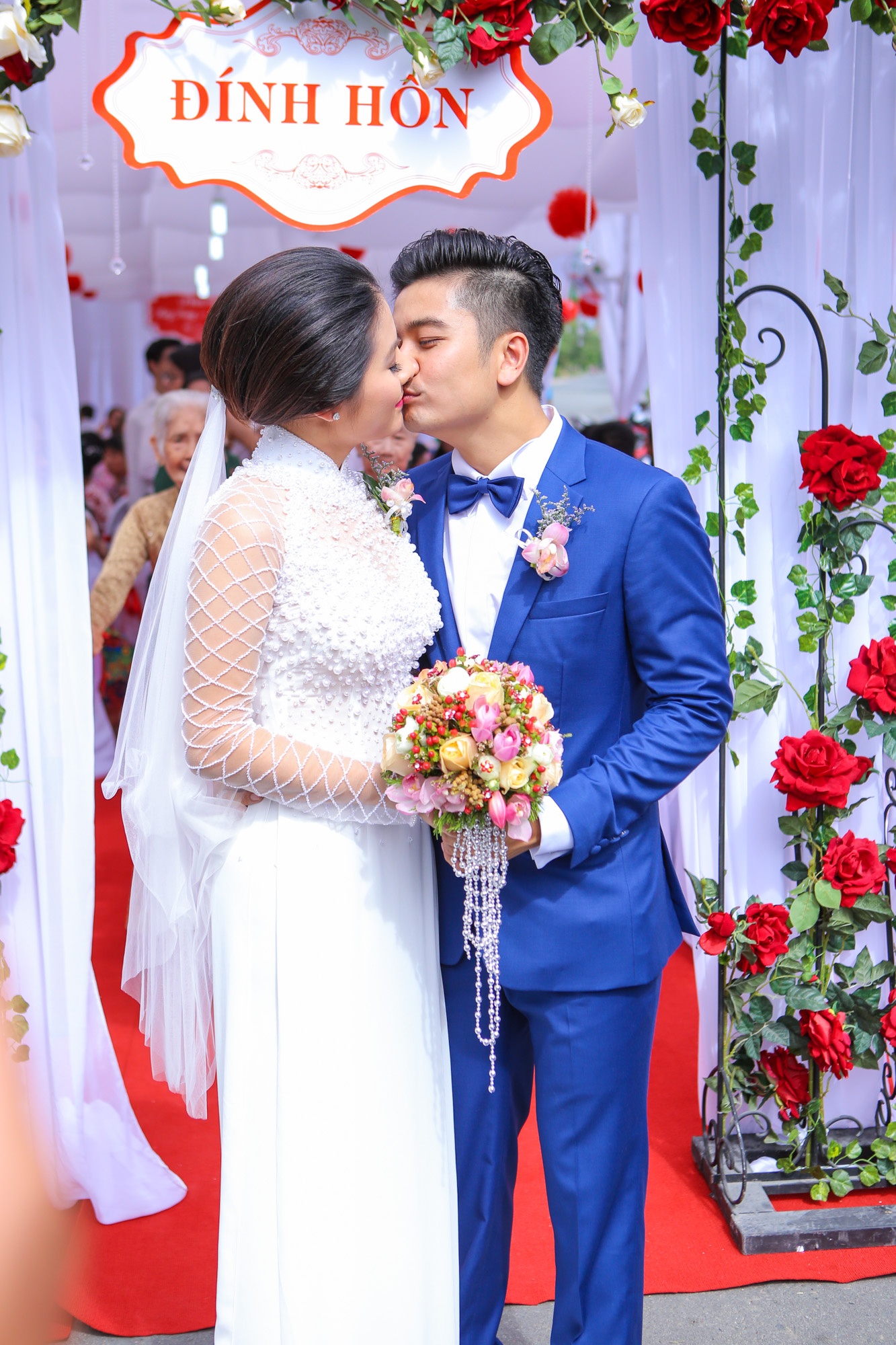 | Trước khi bước vào nghi lễ chính, hai người không ngần ngại hôn nhau say đắm trước sự chứng kiến của họ hàng và bạn bè thân thiết. |