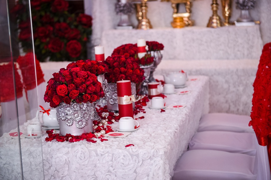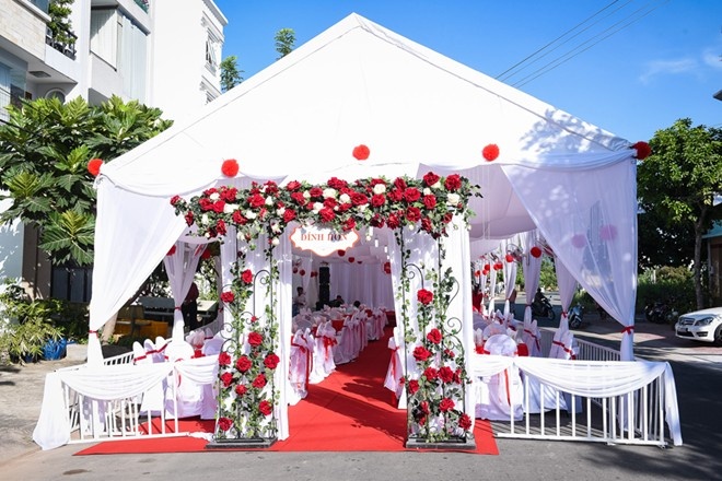 | Để chuẩn bị cho đám hỏi chu toàn, cô cùng ông xã doanh nhân lên ý tưởng từ nhiều tháng trước. Lễ đám hỏi có tông chủ đạp là trắng đỏ, gam màu yêu thích và hợp mạng diễn viên sinh năm 1990. |