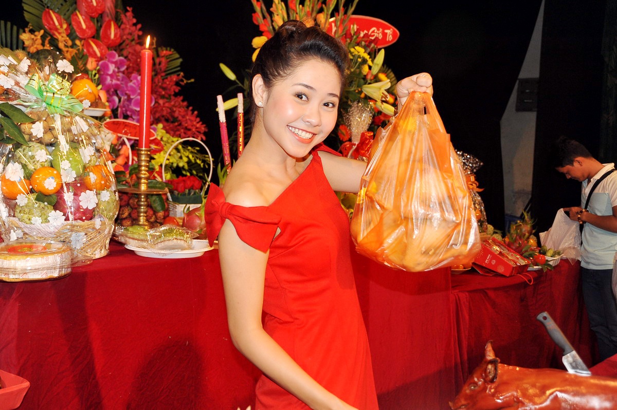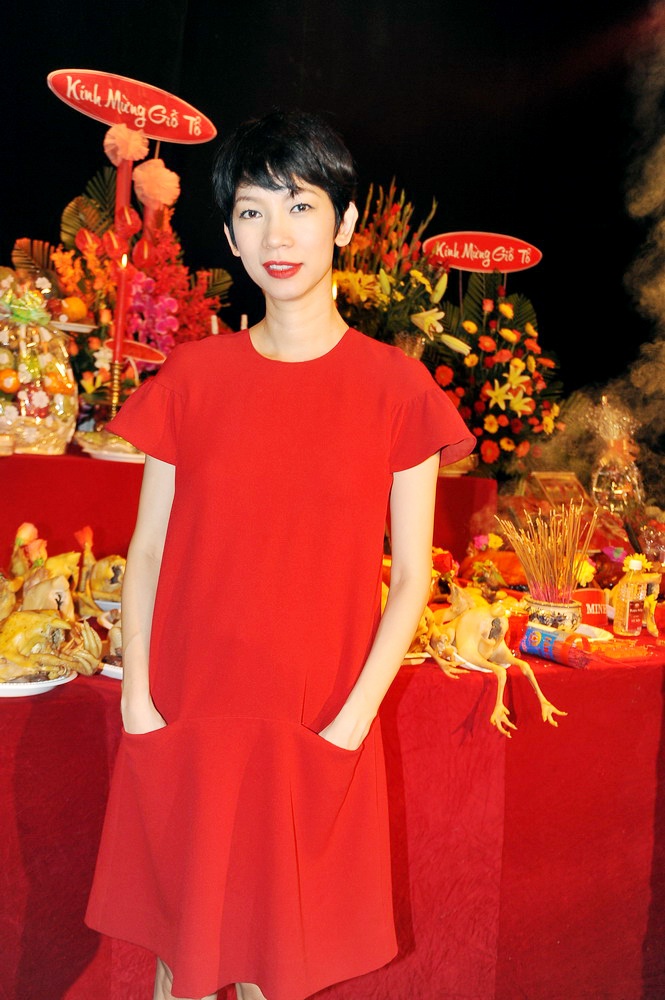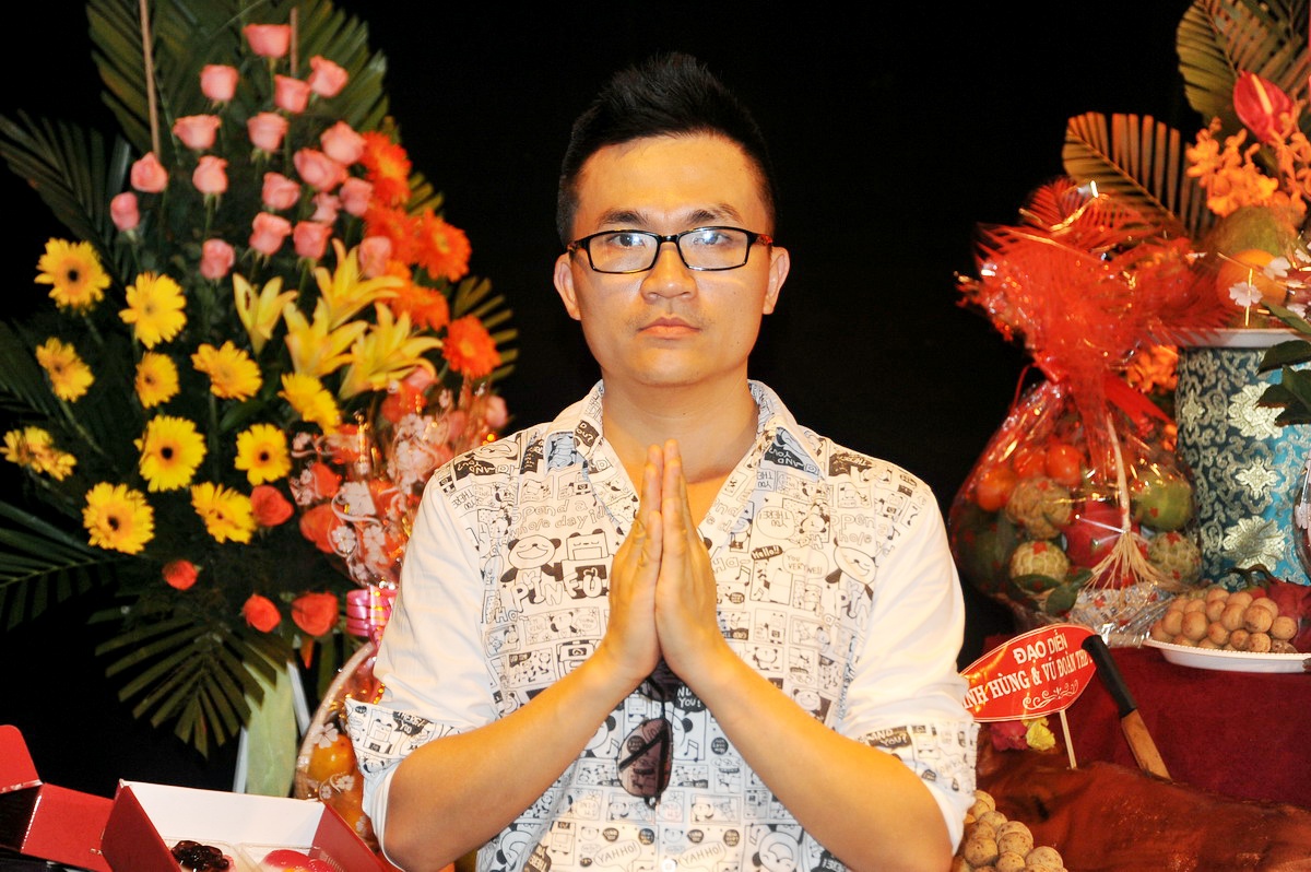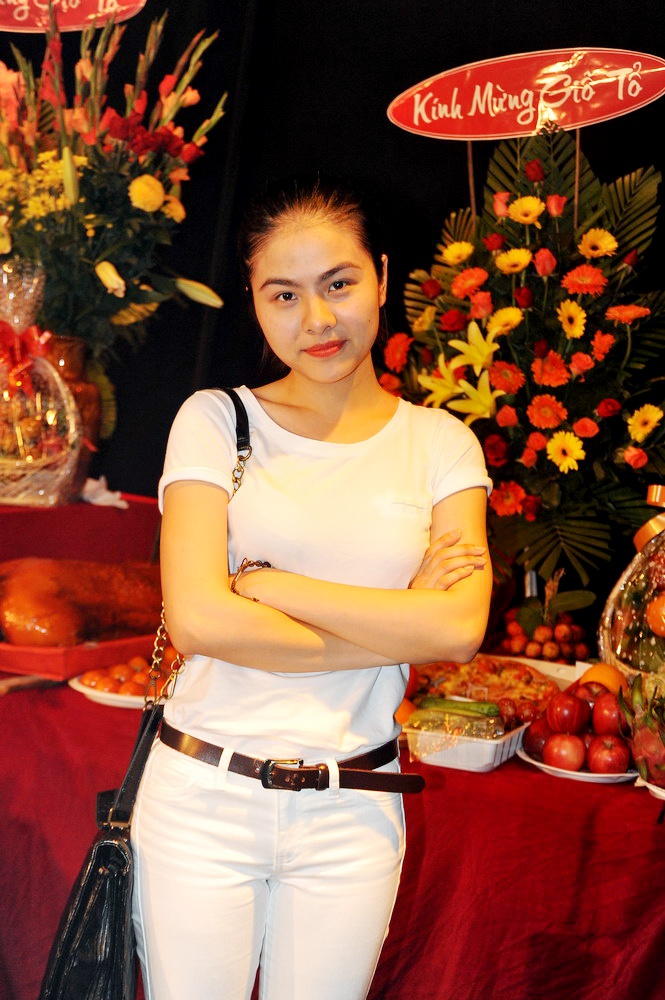| Tường Vy cho biết, đây là lần đầu tiên cô tham gia cúng tổ tại sân khấu kịch Idecaf. Khi nhìn thấy những anh chị như Thành Lộc, Xuân Lan, Lê Khánh, Đại Nghĩa... thành kính trước bàn tổ và vui vẻ hướng dẫn cho đàn em, cô cảm thấy rất xúc động. |