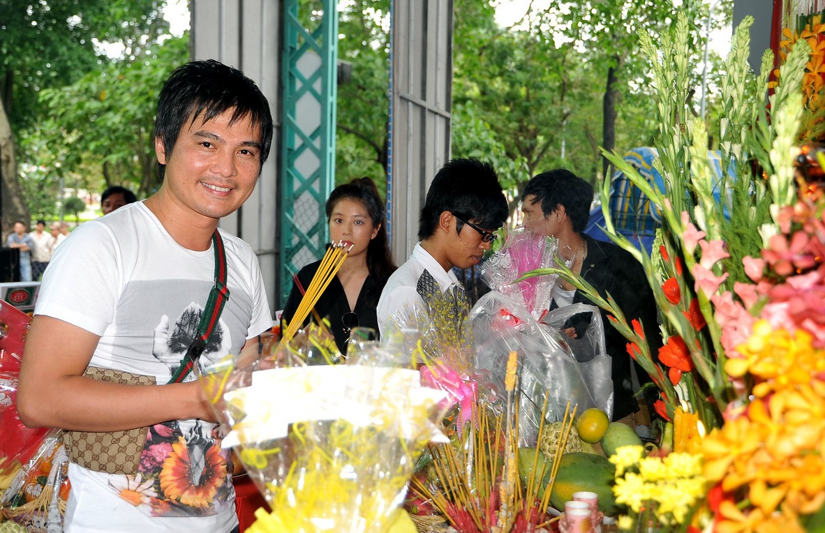 | Ca sĩ Hoàng Châu cho biết: " Nguyên một ngày cúng tổ tôi phải chạy 6 điểm khác nhau để cúng tổ. Xa nhất là ở Đồng Tháp, tuy mệt nhưng có nhiều kỷ niệm đáng nhớ". |