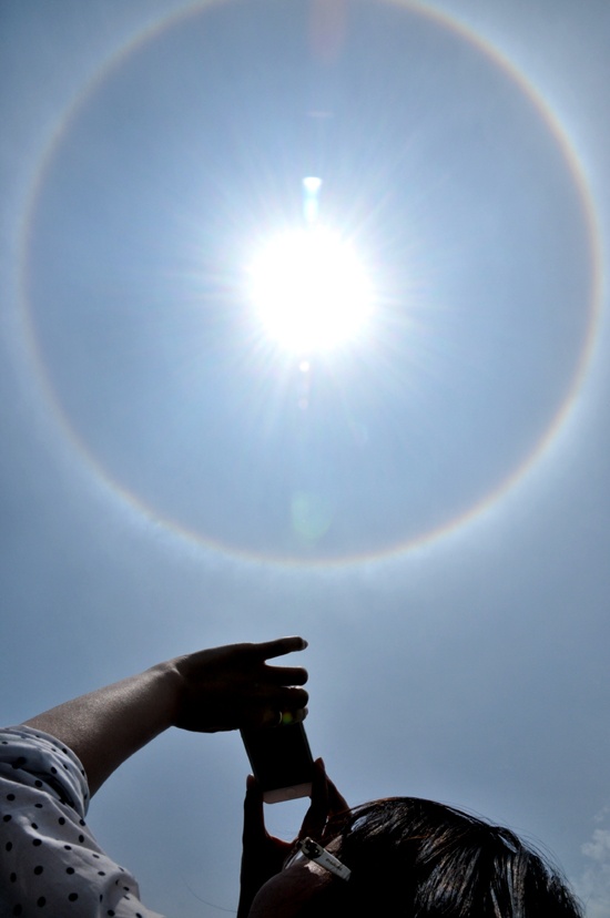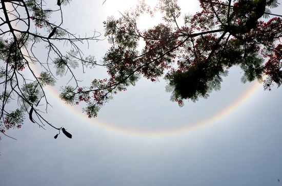 Vào 11h ngày 7/5, người dân TP Hạ Long được chứng kiến cảnh tượng vành ánh sáng phát ra từ không gian xung quanh mặt trời trông rất kỳ thú và đẹp mắt.