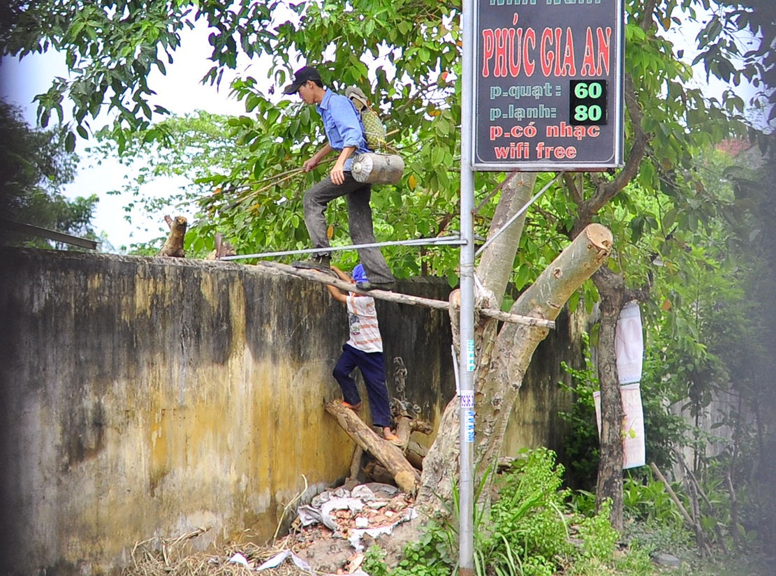 Tôm cá tại hồ nhiễm dioxin gây nguy hiểm đến sức khỏe người sử dụng nhưng nhiều người vẫn tìm cách vào hồ đánh bắt. Họ tháo gỡ thép gai của hàng rào sân bay cao 2 m rồi dùng cây làm "thang" để ra vào.