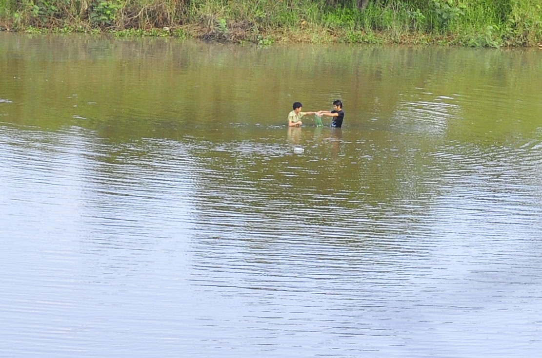 Một số người được phân công chở cá đi tiêu thụ trong khi những người còn lại tiếp tục bám hồ bắt cá.