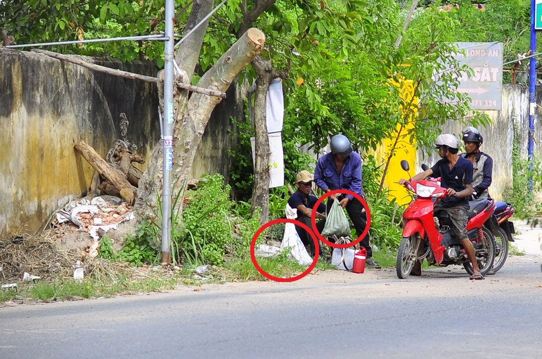 Nhóm người ở Bình Dương chuyển các bao tải chứa cá ra ngoài hàng rào sau 2 giờ đánh bắt.