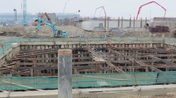 Thực sự khó có thể miêu tả hết độ “khủng” của đại công trường này. Trên những con đường nội bộ chằng chịt, hàng ngàn chiếc xe tải nặng hối hả tung bụi mù trời. Phía trong hàng rào bằng tôn là những công trình đồ sộ, con người lọt thỏm, nhỏ bé giữa muôn vàn bê tông, sắt thép.