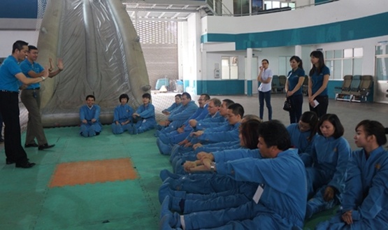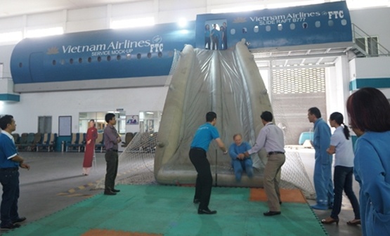 | Thực hành tình huống thoát hiểm khẩn cấp từ máy bay. |