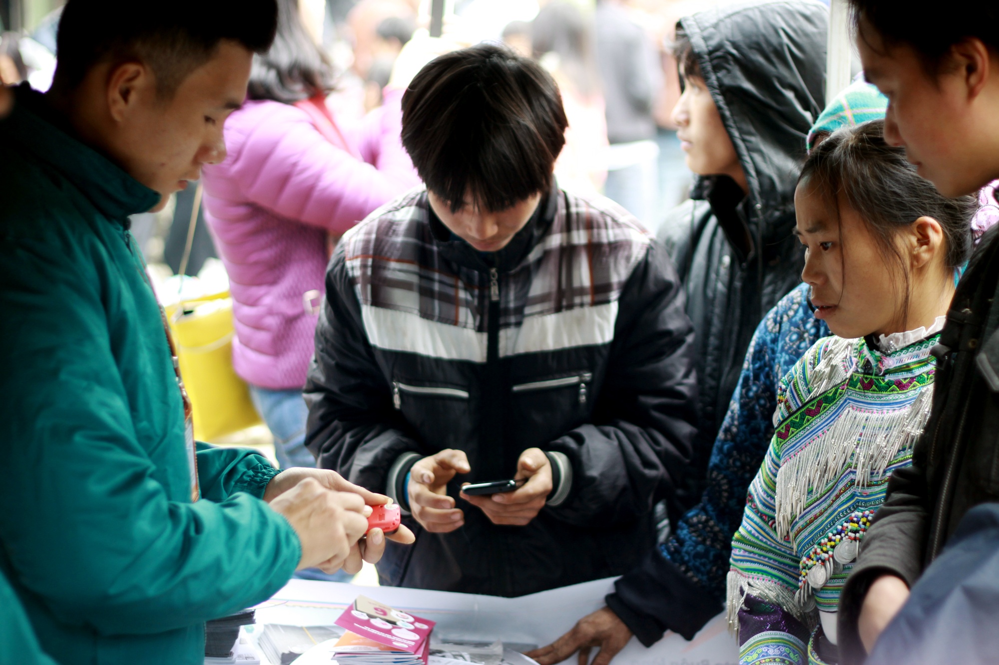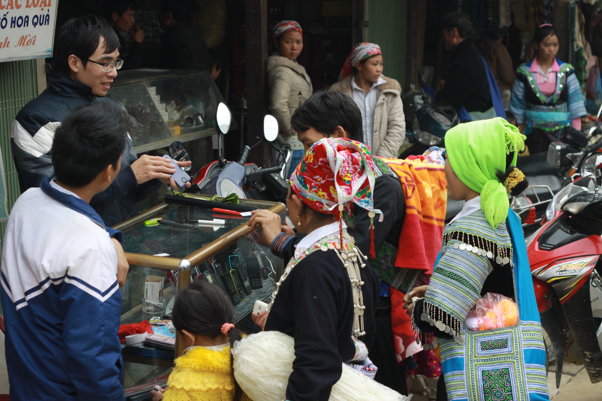 Người dân tộc ở Lào Cai sản xuất theo mùa. Tháng 4 tới tháng 6, họ không có thu nhập vì nắng nóng, gần như toàn bộ doanh thu hàng năm đến từ tháng 11 tới tháng 2. Và ở khoảng thời gian này, họ sẽ kéo nhau về các chợ phiên để ăn uống và... mua điện thoại.