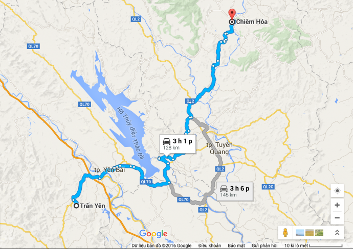 | Hai địa điểm xuất hiện vật thể lạ ở Tuyên Quang và Yên Bái cách nhau gần 130 km theo đường bộ. Ảnh: báo Giao thông |