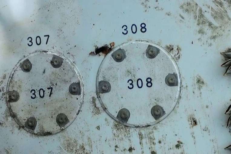 | Các con số trên mảnh kim loại được phát hiện ở Thái Lan ngày 23/1. Ảnh: AFP |