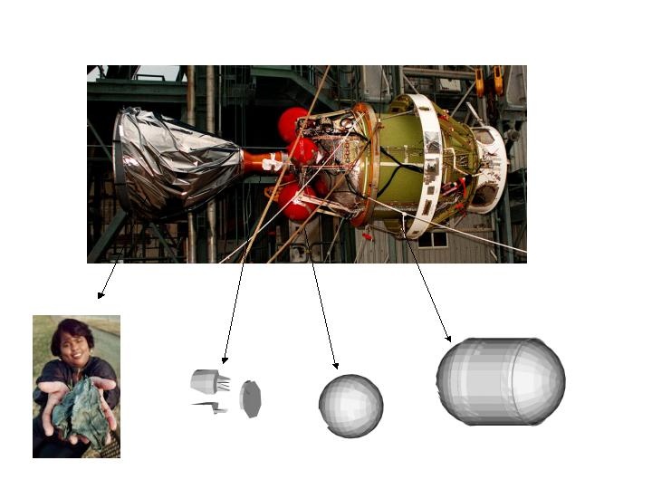 | Một mẫu Space Ball rơi xuống Australia vào năm 2007 với đường kính 54 cm, nặng 20 kg. Khi rơi xuống, nó đã ma sát với khí quyển và không còn nguyên vẹn. |