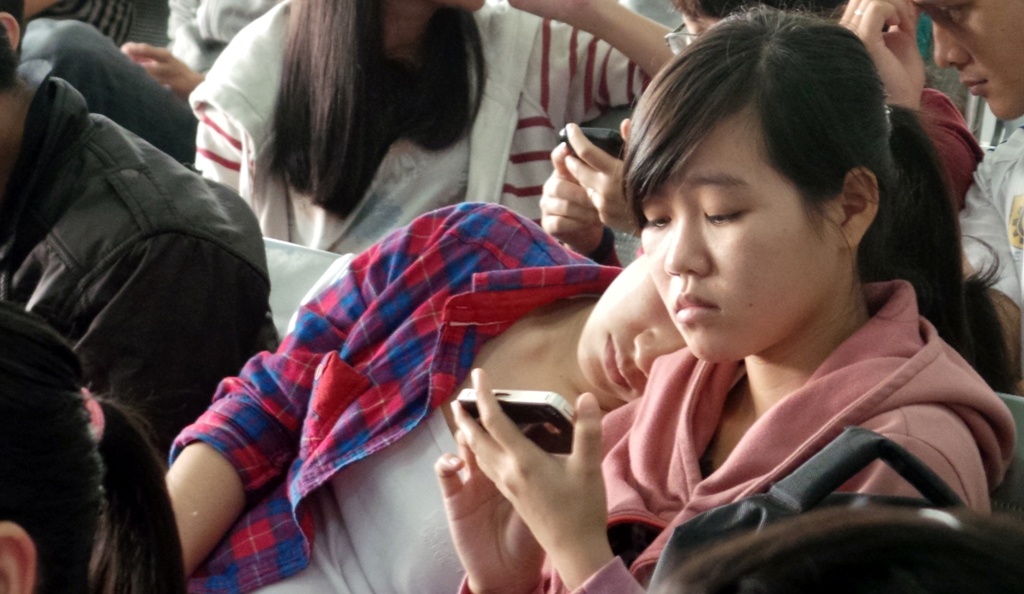 | Một cô gái ngủ ngon lành trong khi nhiều người khác lo lắng chờ đời đến lượt mình mua vé. |