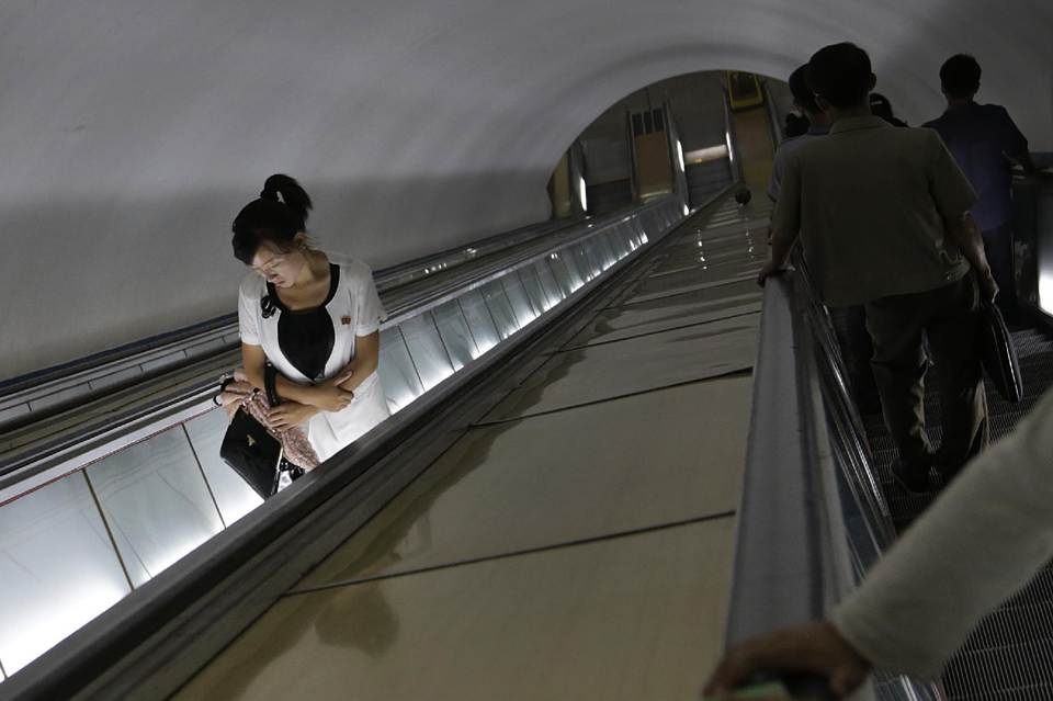 Một cô gái tranh thủ đọc sách trong lúc chờ tàu điện ngầm ở thủ đô Bình Nhưỡng, hôm 1/9. Ở đất nước bí ẩn nhất hành tinh, thời trang quốc tế vẫn còn là thứ khá xa lạ. Tuy nhiên, tại Bình Nhưỡng, nơi có mức sống cao hơn, phong cách và trang phục đang thay đổi trong những năm gần đây. Xu hướng này chậm nhưng chắc và vượt xa suy nghĩ của nhiều người.