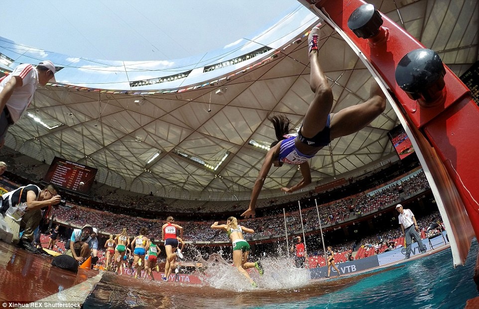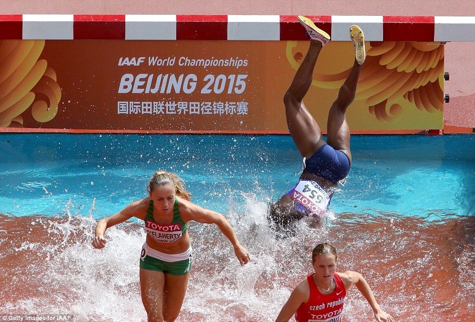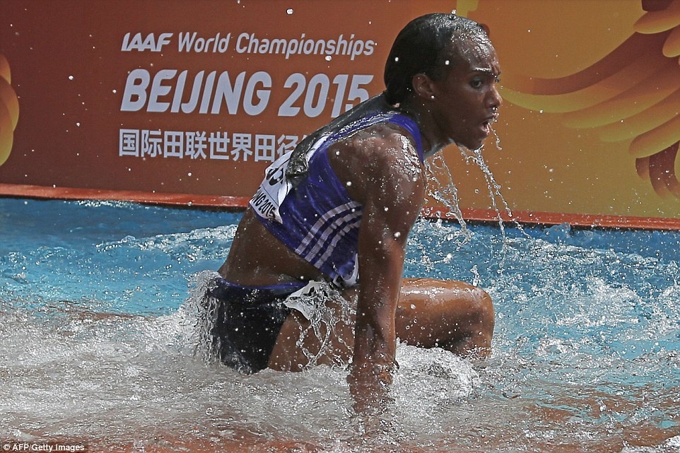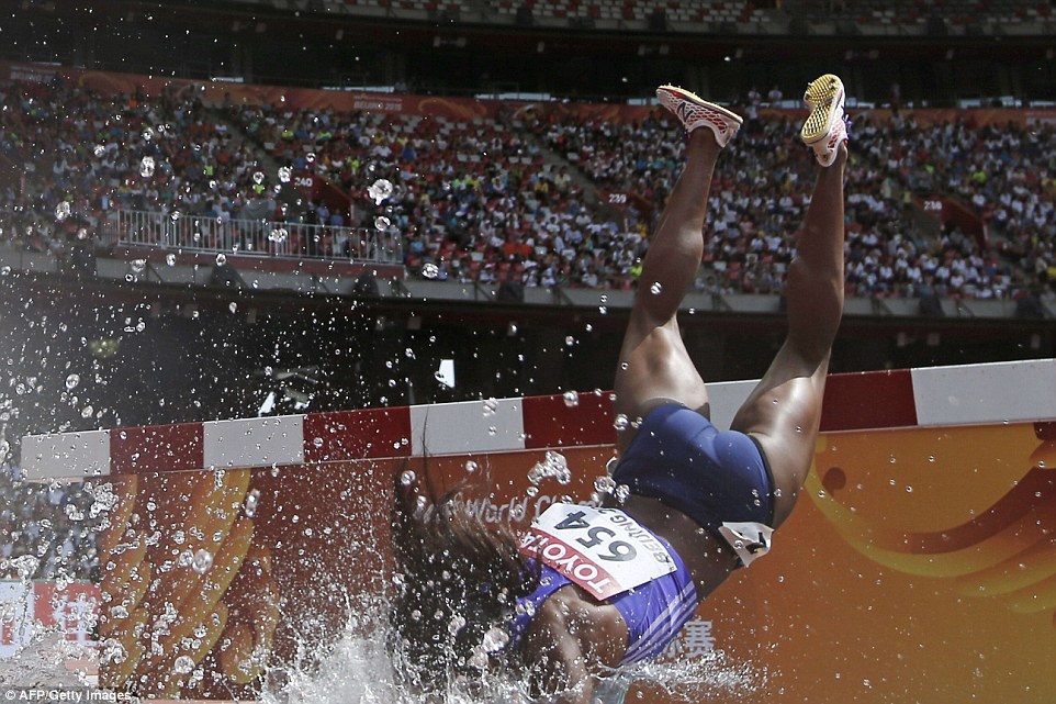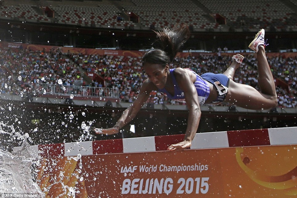 Nữ vận động viên người Panama, Rolanda Bell thi đấu không thành công ở vòng loại nội dung chạy 3.000 m vượt chướng ngại vật tại giải VĐTG đang diễn ra ở Bắc Kinh, Trung Quốc.