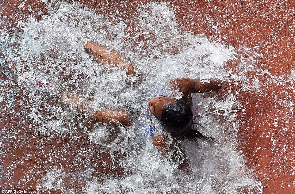 | Dù lao thẳng người xuống mặt nước nhưng vận động viên 27 may mắn không dính chấn thương. |