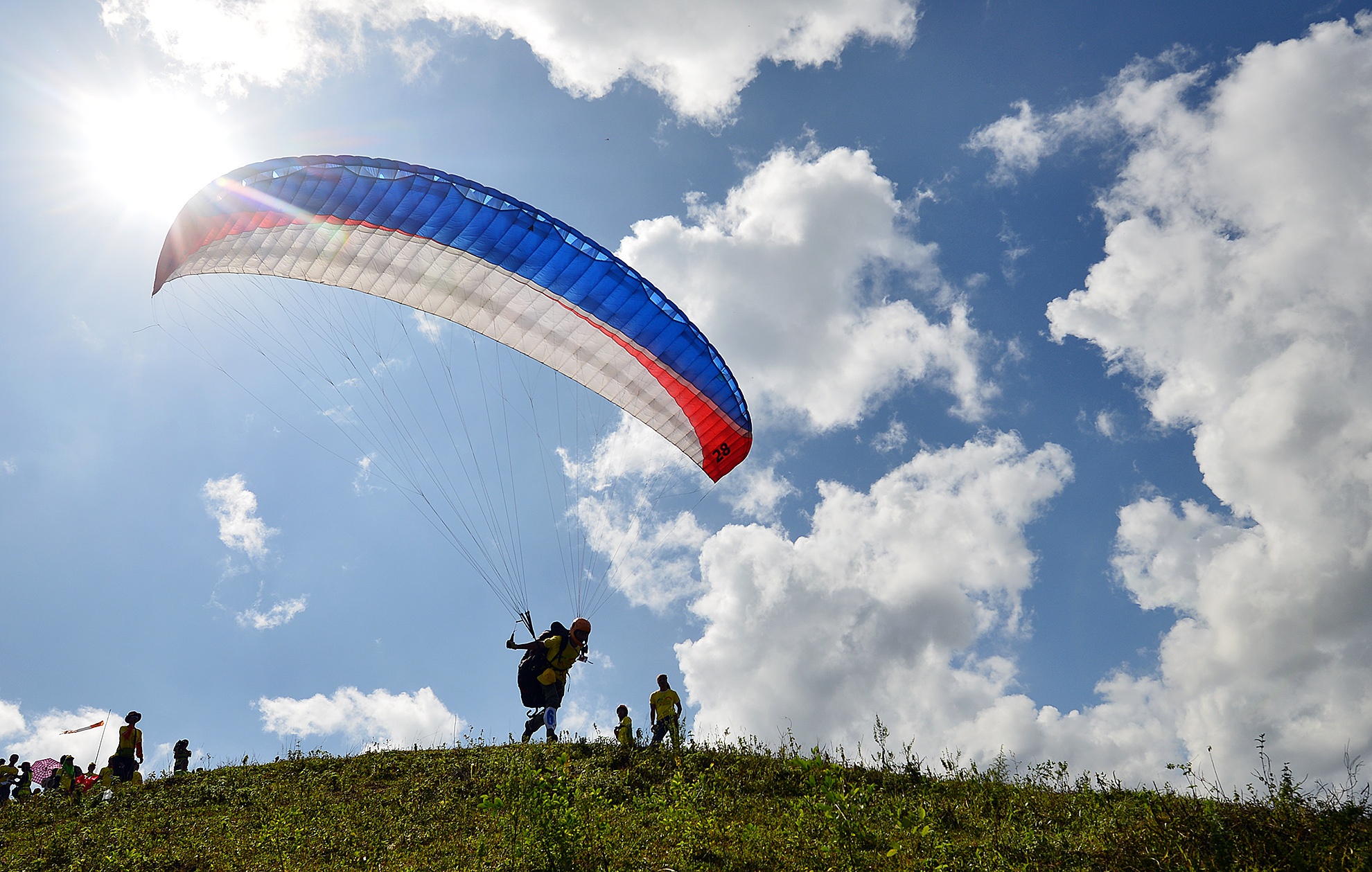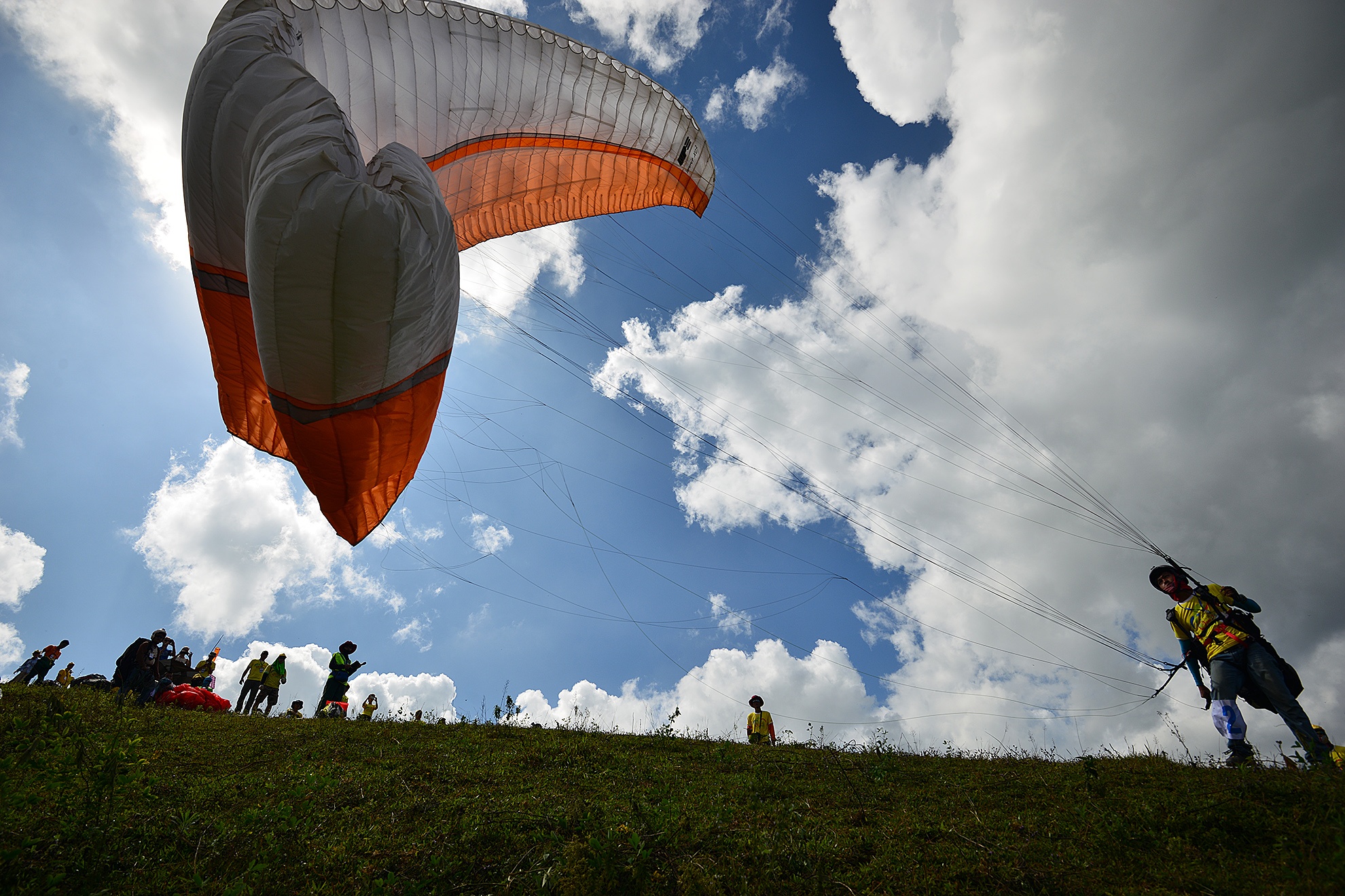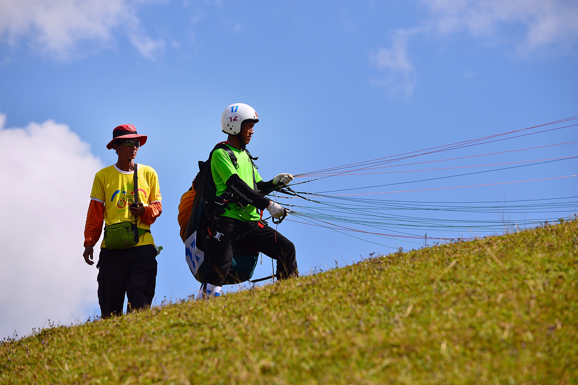 Các trọng tài theo sát vận động viên để đảm bảo an toàn, đồng thời liên tục kiểm tra sức gió rồi mới cho phép cất cánh.