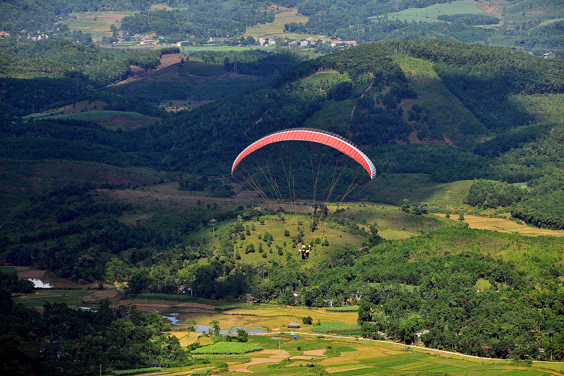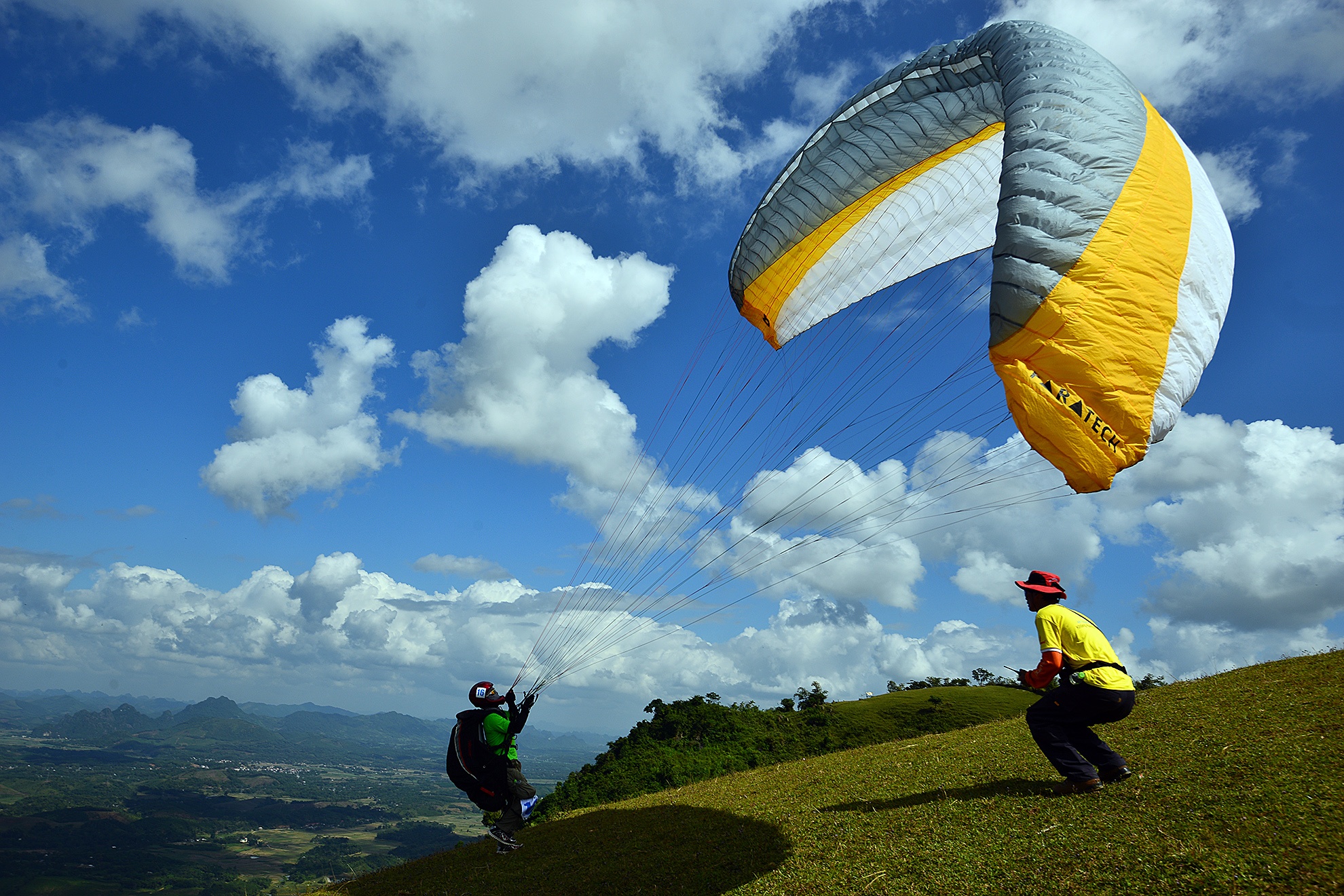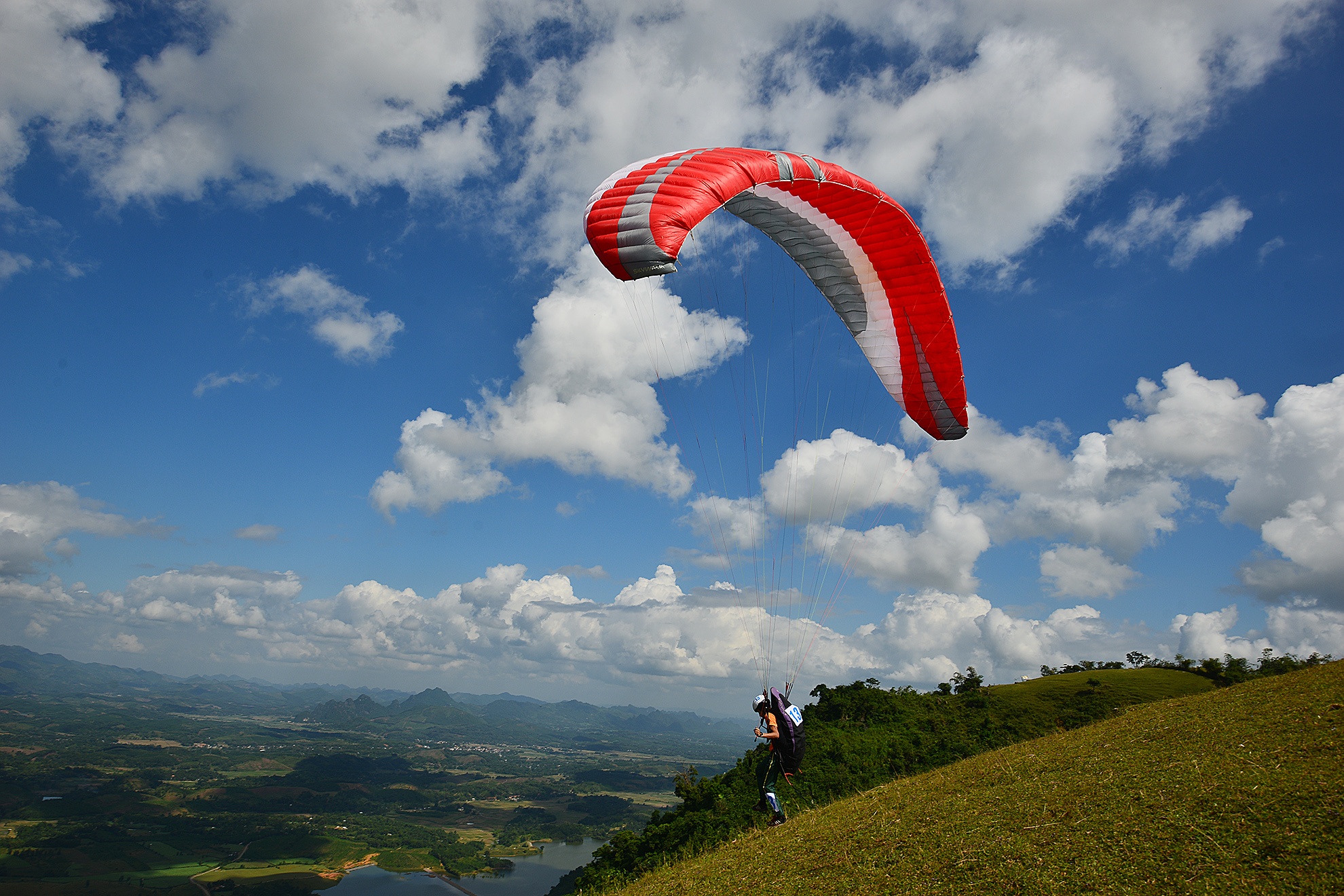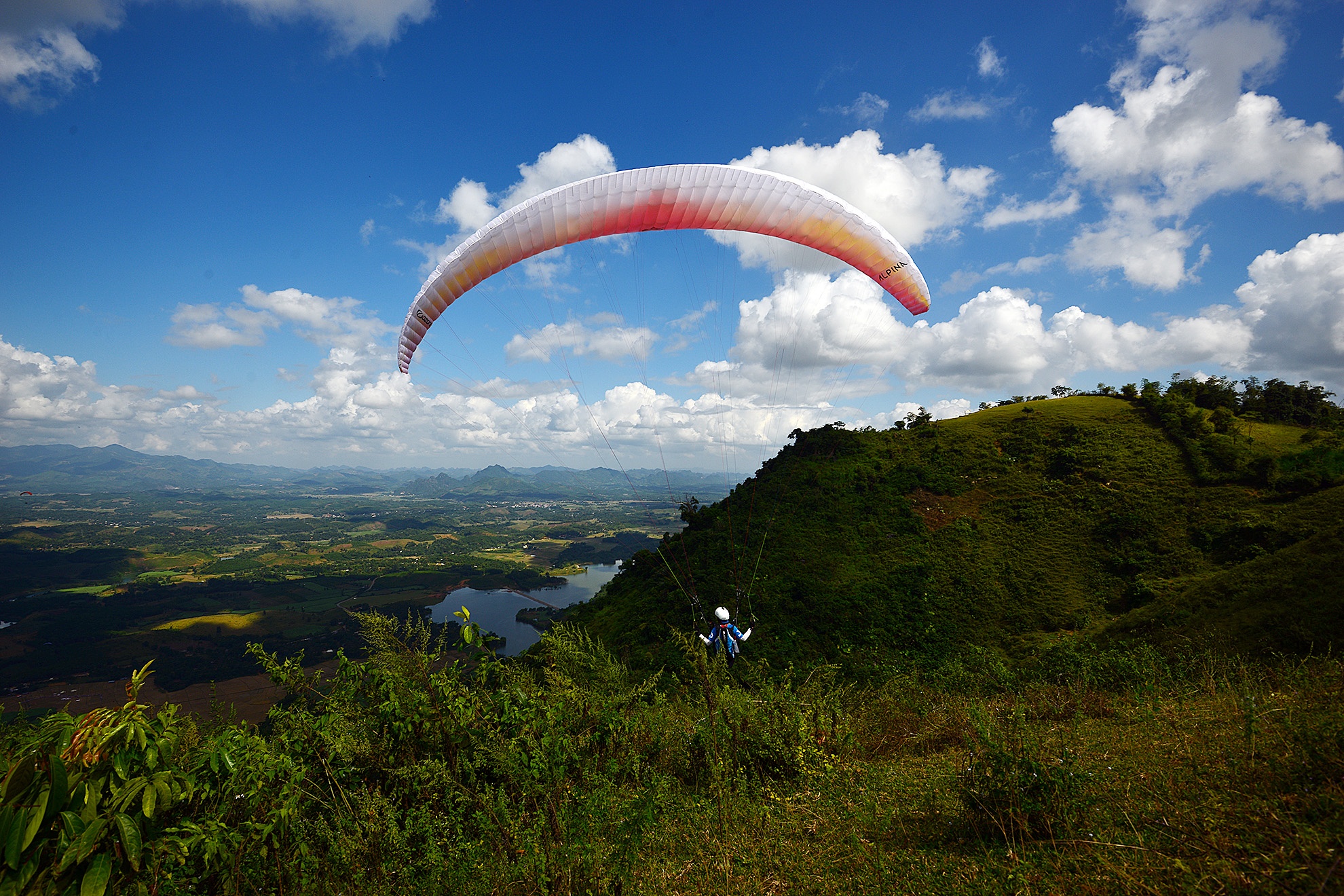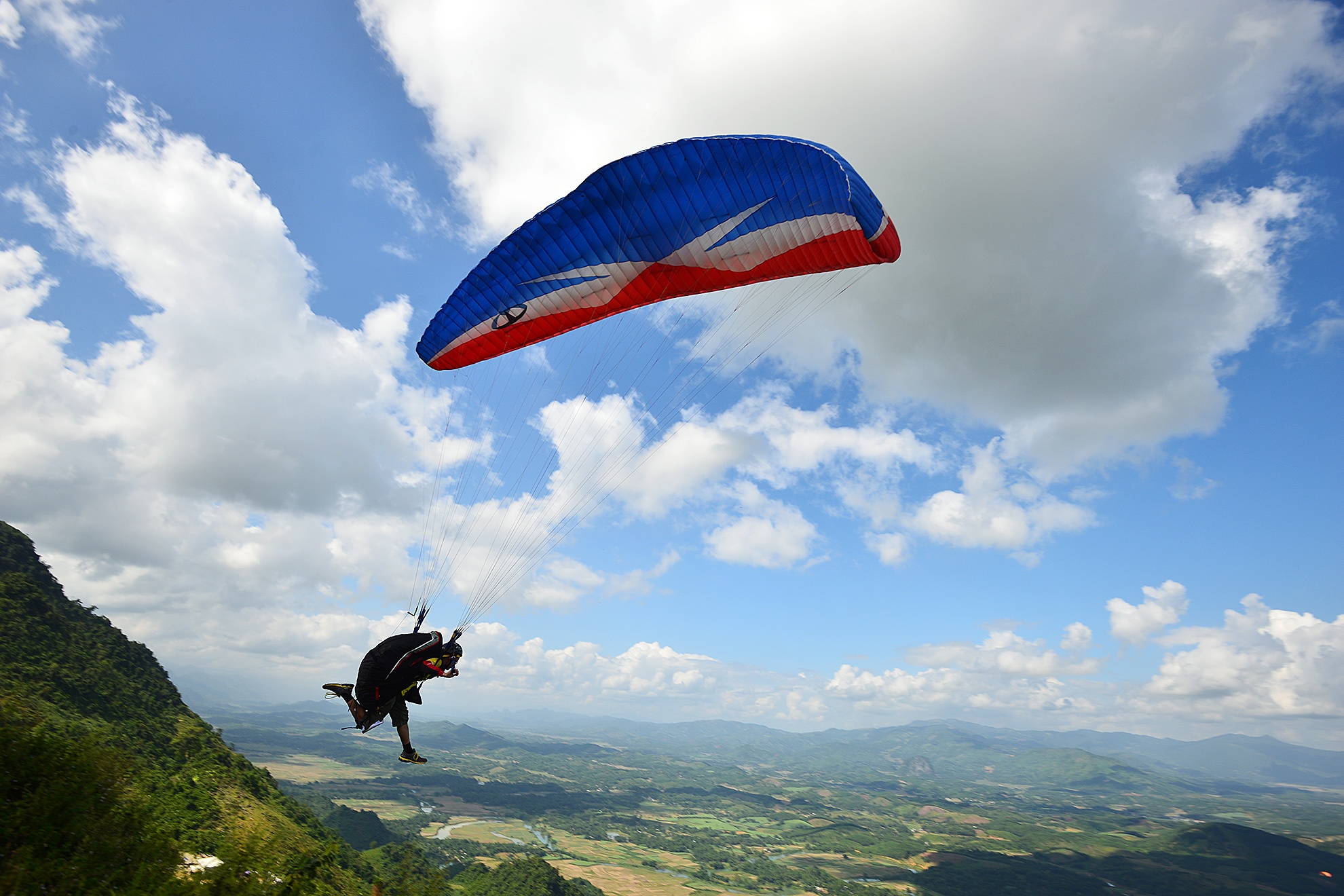 VĐV mạo hiểm thả mình từ đỉnh núi bằng dù lượn