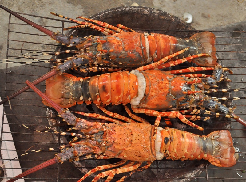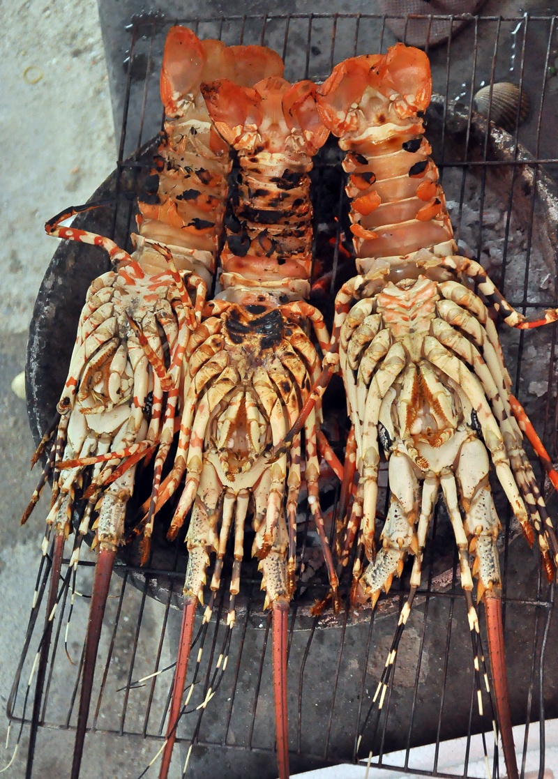 | Loại tôm hùm hoa khi nướng trên than hồng rất đẹp. |