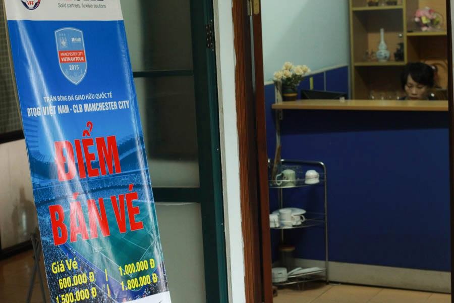 Trong sáng nay, nhân viên bán vé của BTC trận đấu ĐT Việt Nam - Man City khá nhàn nhã khi chỉ có lác đác khách tới mua. Đa số người dân tìm mua vé mệnh giá thấp 600.000 đồng và 1.000.000 đồng.