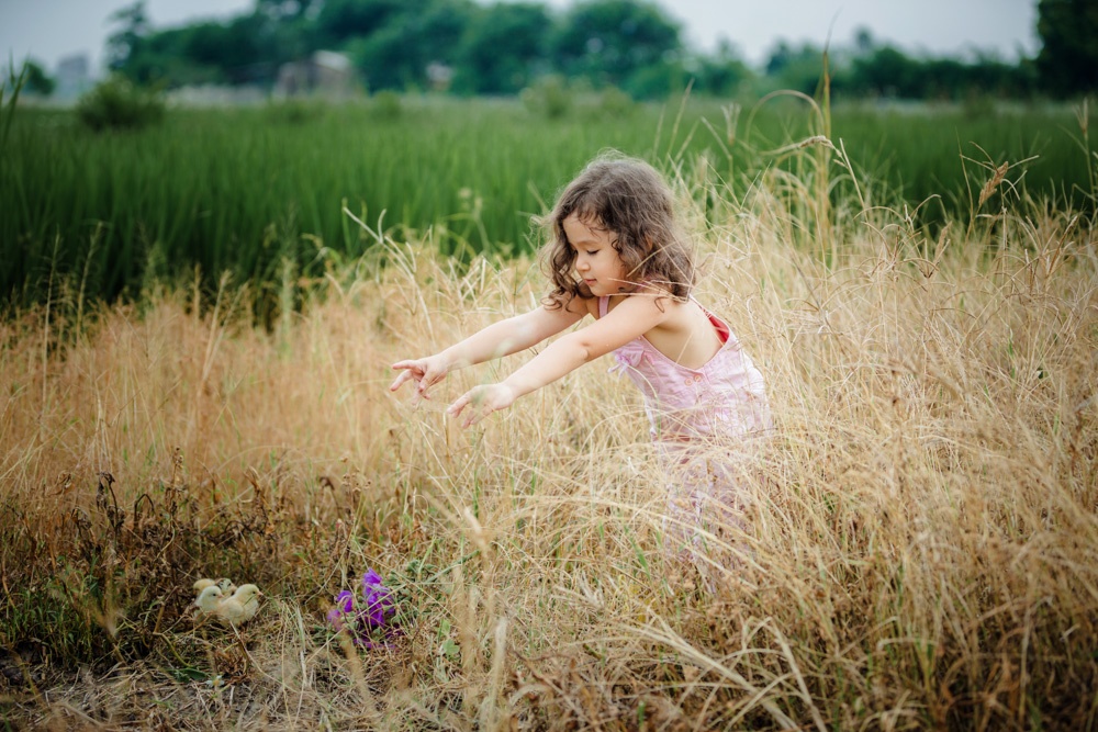 | Các bức hình khiến dân mạng thích thú khi ghi lại khoảnh khắc tự nhiên, chơi đùa với cây cỏ, rơm rạ hay những người bạn tí hon... của cô bé lai Tây. |