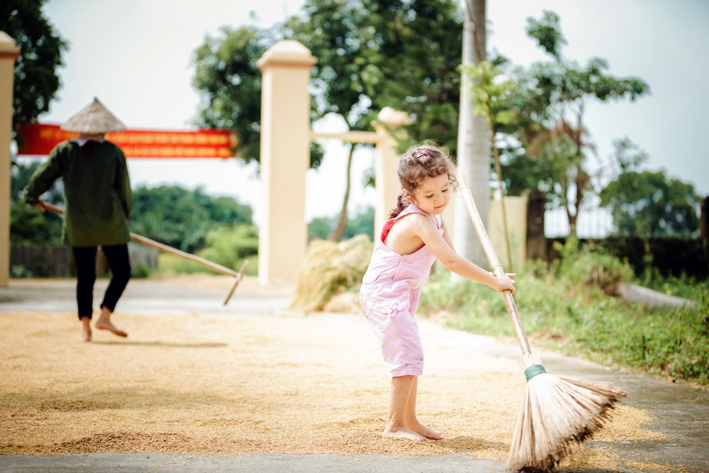 | Mỗi cuối tuần, gia đình Lin lại cùng nhau về thăm quê. Đây là cách bố mẹ giúp bé có nhiều trải nghiệm đáng nhớ khi được hòa mình vào thiên nhiên. |
