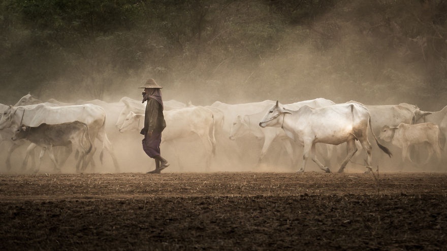 | Hình ảnh những đàn bò trắng hiền lành đã trở thành một nét đẹp đặc trưng của Myanmar. |
