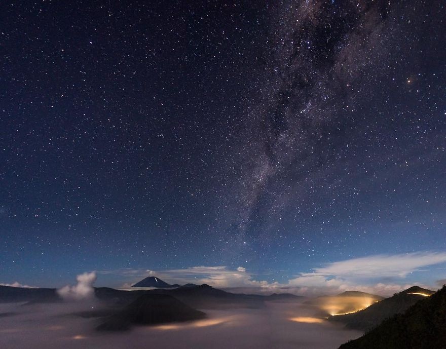 | Không khí trong lành trên núi Bromo tạo điều kiện lý tưởng để König chụp lại hình ảnh dải ngân hà trên bầu trời đêm xanh thẳm.