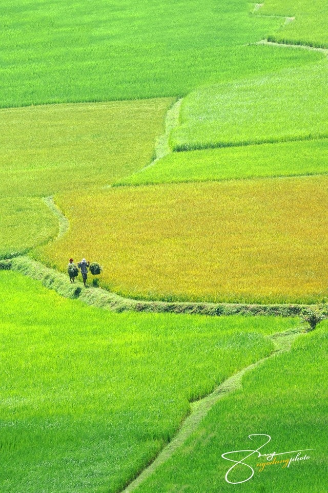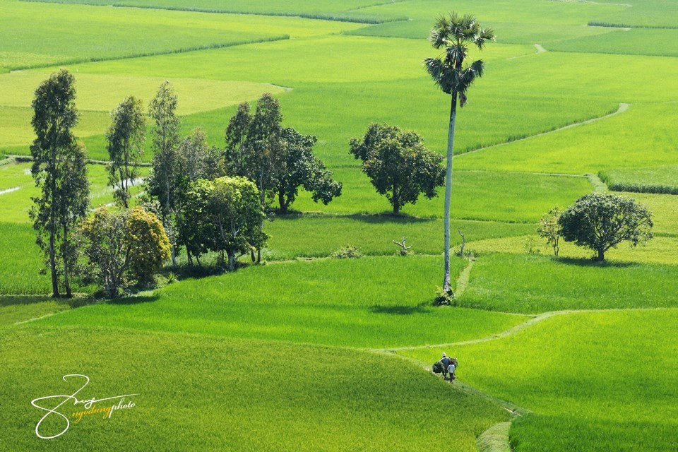 | Vào mùa lúa non, cả cánh đồng như một tấm thảm xanh ngút ngàn, mang vẻ đẹp phì nhiêu như người thiếu nữ đang tuổi xuân thì. |