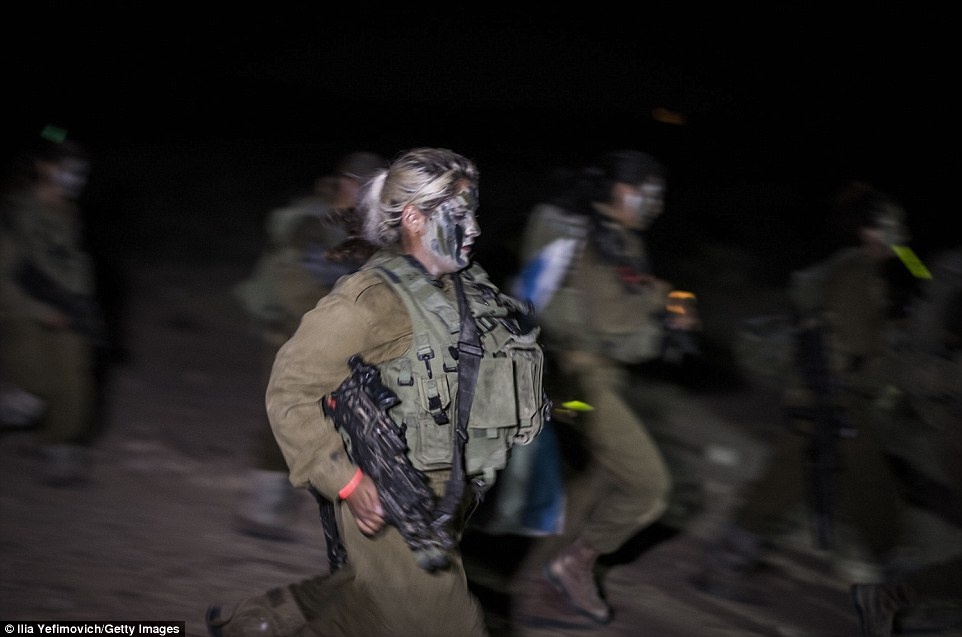 Các cô gái “mèo sa mạc” chuẩn bị cho cuộc hành quân gần Azol, vùng biên giới giữa Israel và Ai Cập.