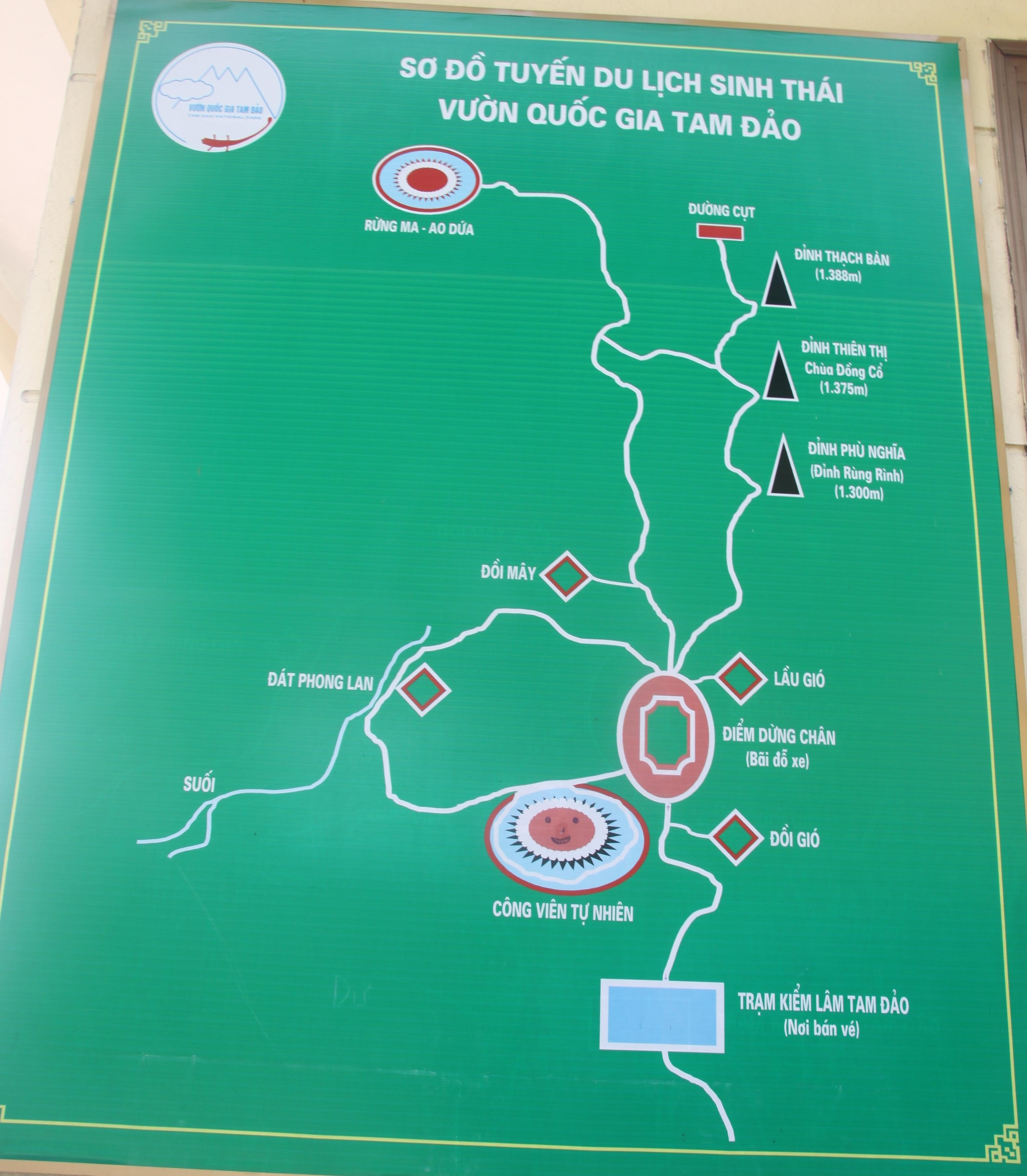 Từ đây bạn có thể chọn nhiều hành trình khám phá, như leo 3 đỉnh núi Tam Đảo, thăm Công viên tự nhiên, rừng Đát Phong Lan, Đồi Mây, rừng Ma - Ao Dứa… |