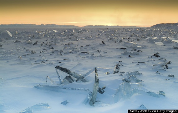 Hồ Baikal nằm ở phía Nam Siberi, được hình thành từ một khe nứt lớn trên bề mặt Trái đất, có hình dáng tựa mảnh trăng lưỡi liềm. Hồ được hình thành cách đây 25 - 30 triệu năm nên được mệnh danh là hồ nước ngọt có tuổi thọ lớn nhất thế giới. Ảnh: Huffingtonpost.